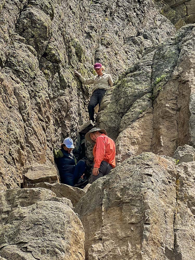 We arrived at the base of Pilot Rock and decided lunch was first on the agenda. In addition Steve W. (along with Maria) had come along to help several people who wanted to climb to the top. Three, including Steve climbed to the top and had a great time enjoying the view from the top. The two new climbers really enjoyed Steve’s helping instruction.