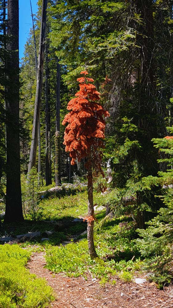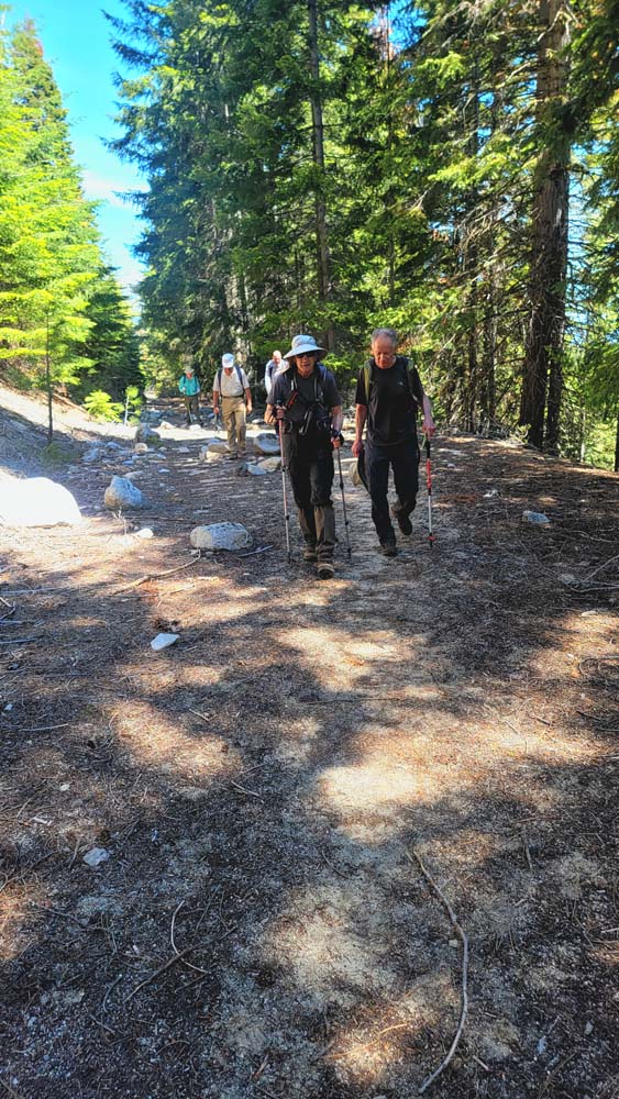 The temperature continued to rise and people were soaking shirts, handkerchiefs and hats in the water. We then went down to the split in the trail and up to Big Duck Lake and enjoyed the views. On the way back down, more leg cramps and muscle spasms. Again, more fluid intake and electrolytes. It was very slow going, but everyone made it back to the trail head.