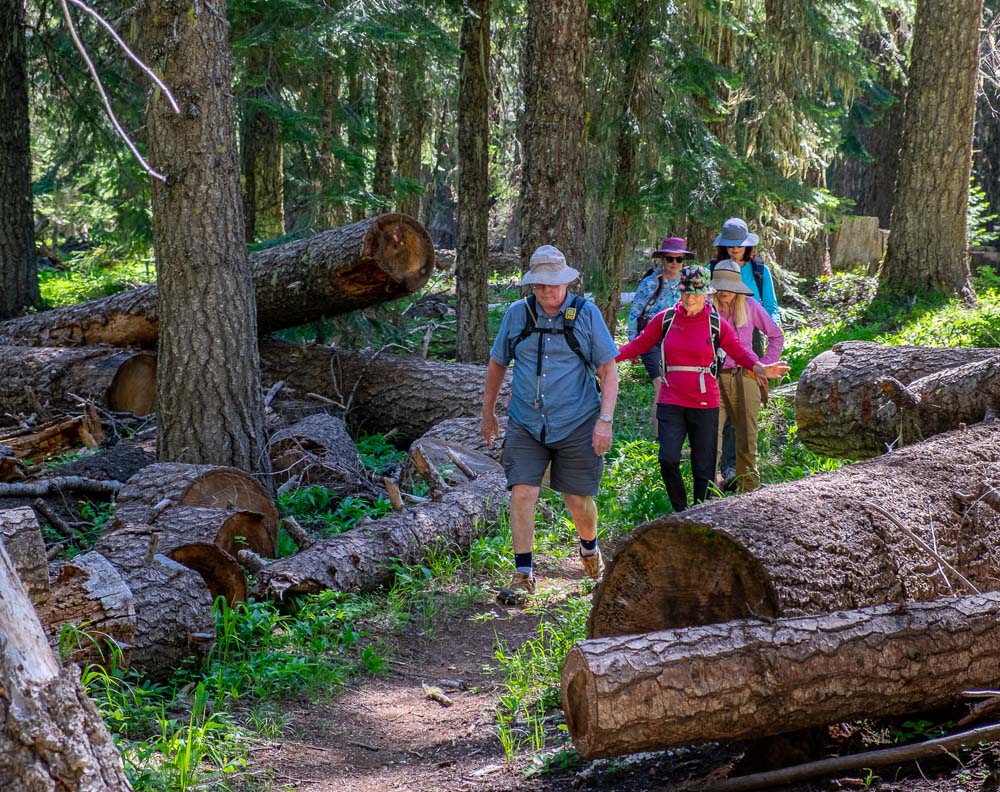 We again hit perfect weather for the hike. There was a bit of deadfall but nothing that mattered. Flowers were plentiful and the thimble berries were coming out.