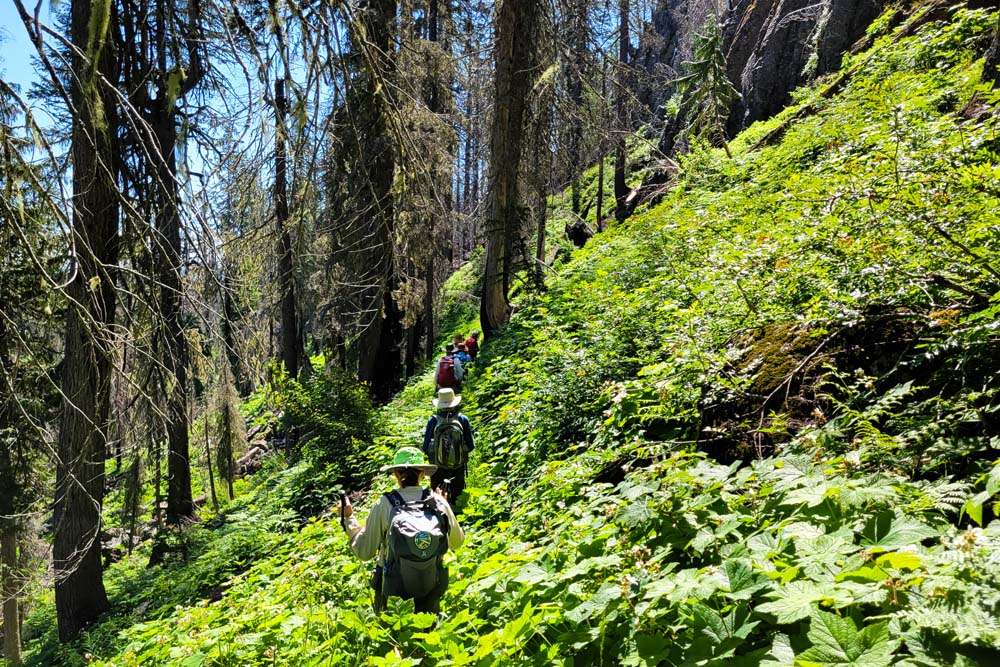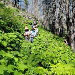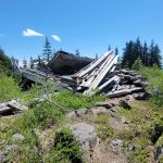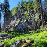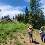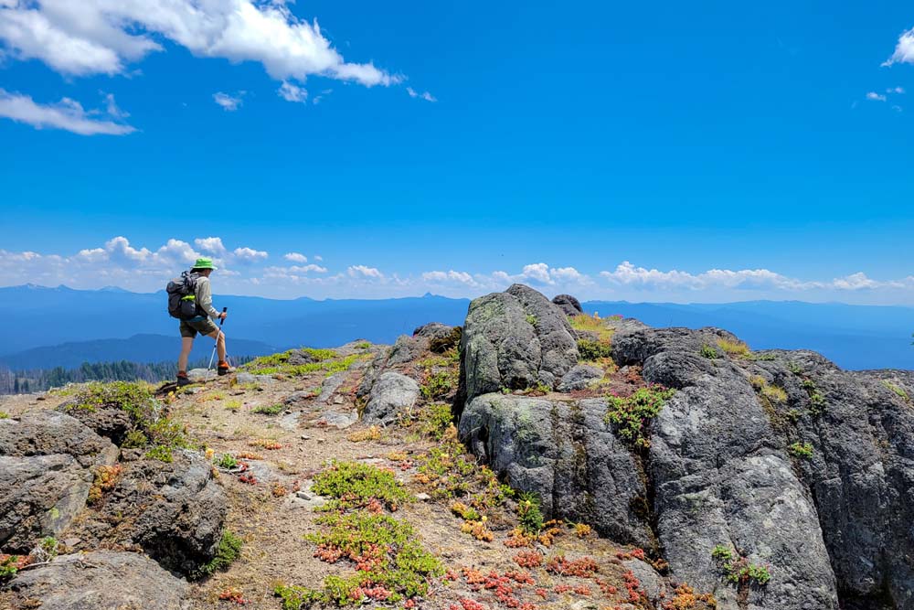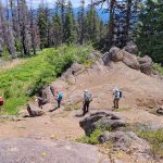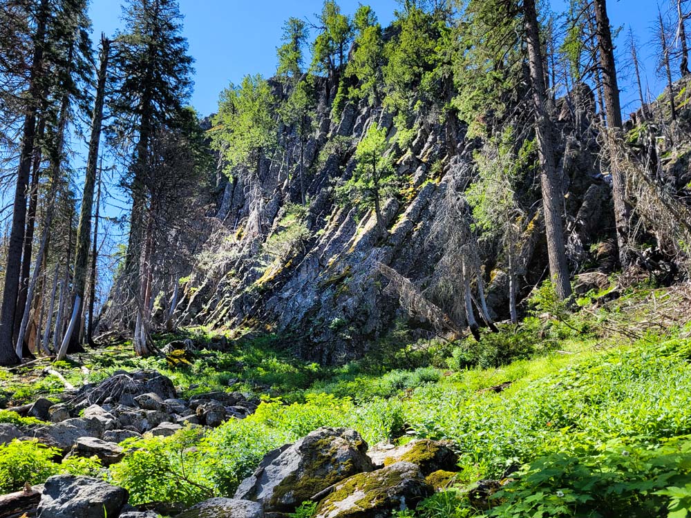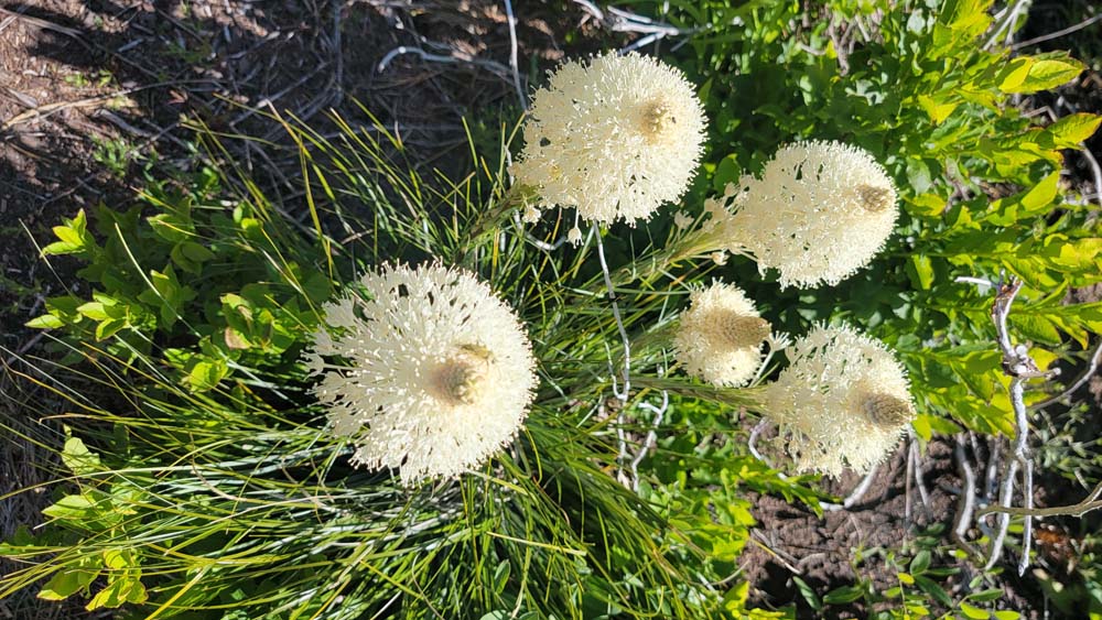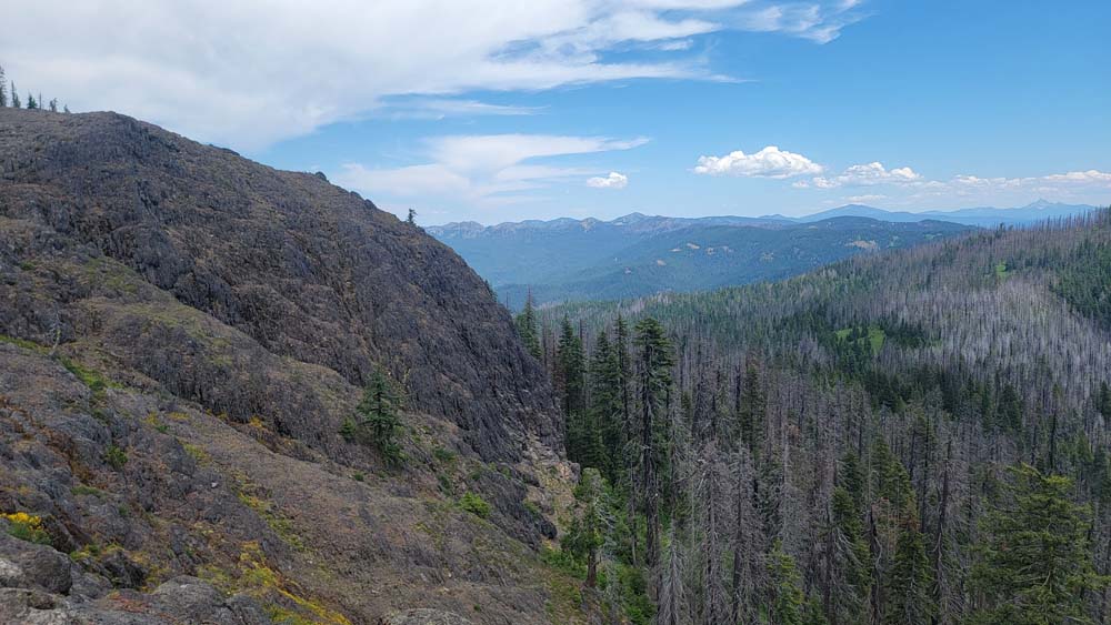 We saw many wildflowrrs as we made our way through the overgrown trail. We went up to Abbott Butte to see a pile of wood where the lookout once stood. After a snack break, we bushwhacked for about 15 minutes and came to a rock outcropping. It was there that the others decided they wanted to have lunch and not continue to Elephant Head.