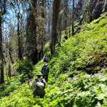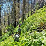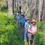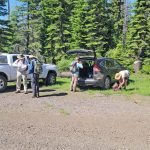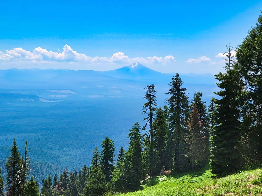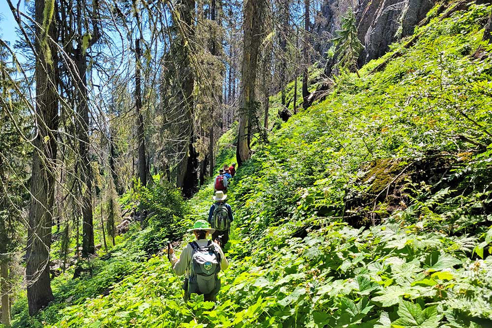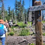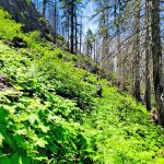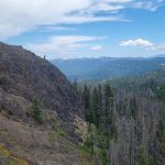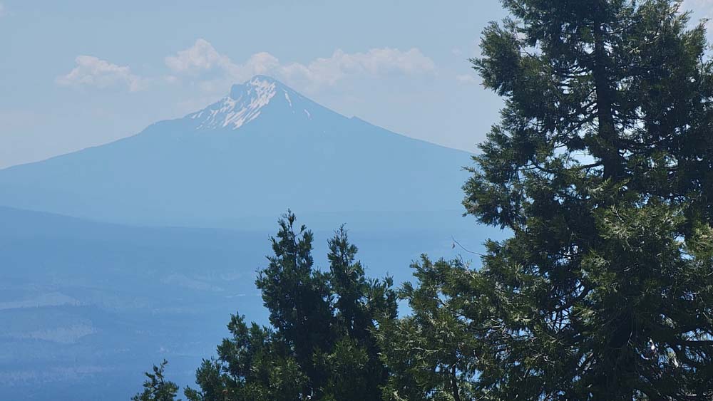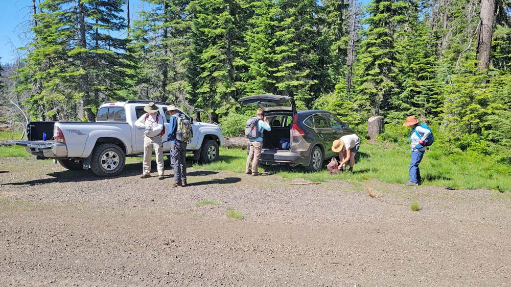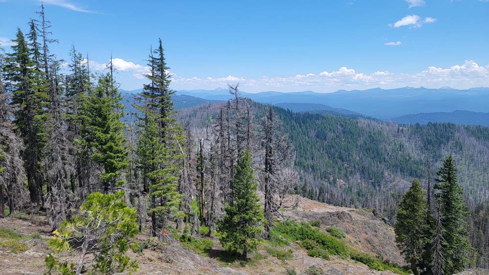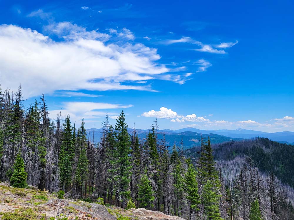 There were 8 people who started from the Abbott Butte trail in nice 72 degree weather. There had been a fire some years back and many snags were left standing. Some had fallen across the trail. Fireweed was everywhere but not blooming yet.