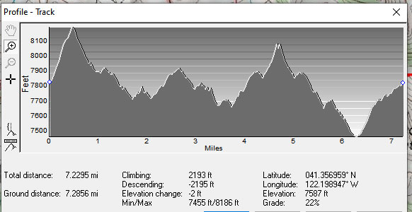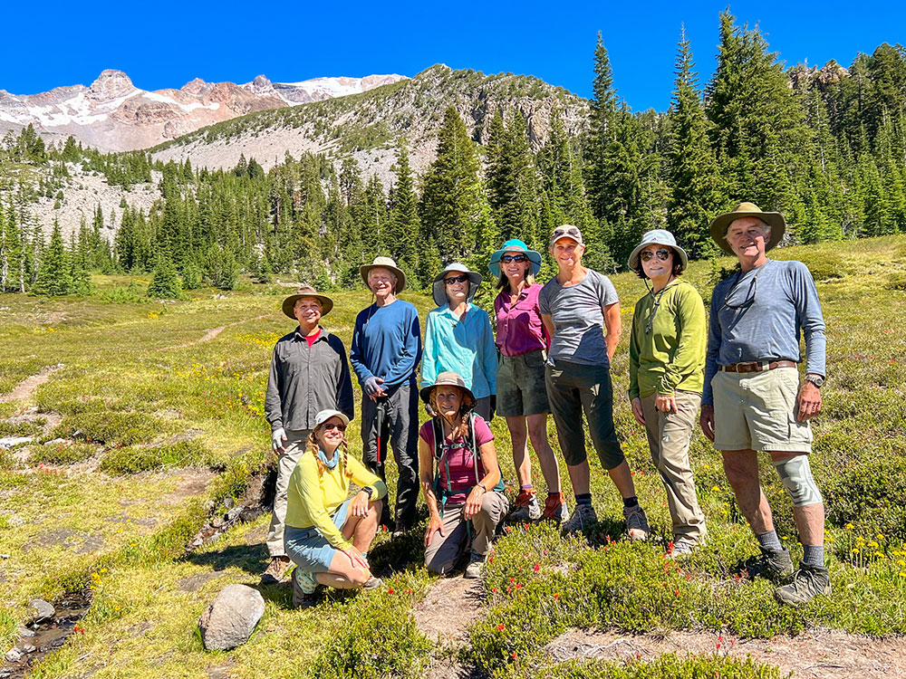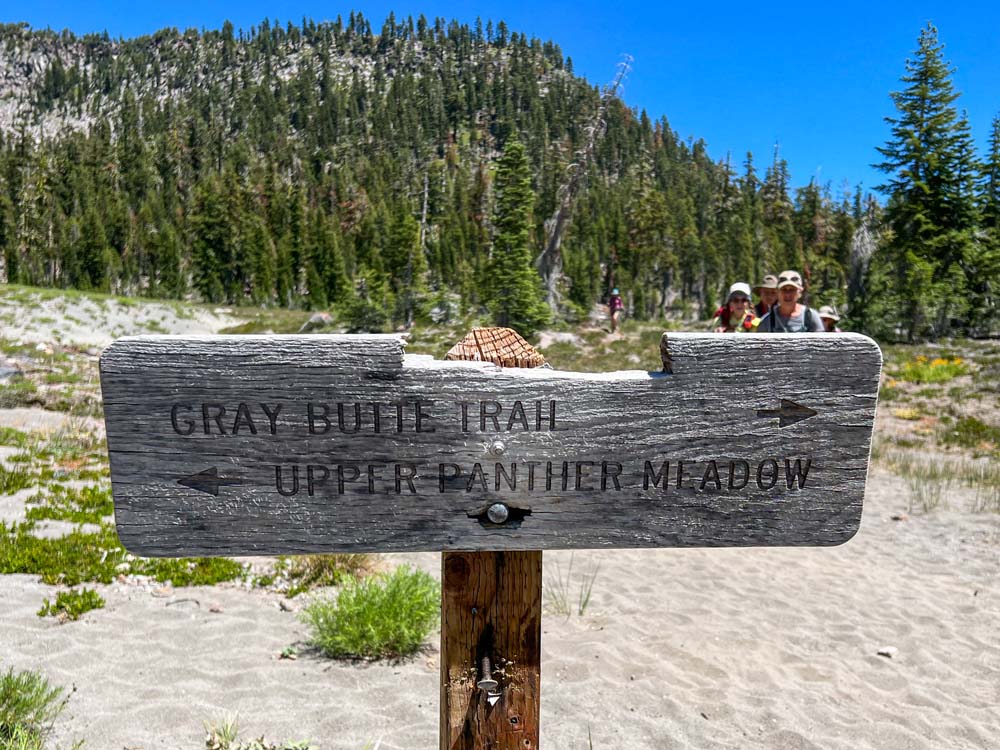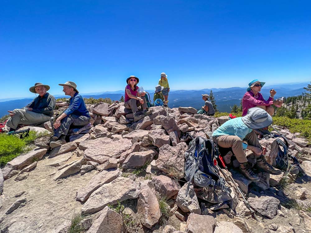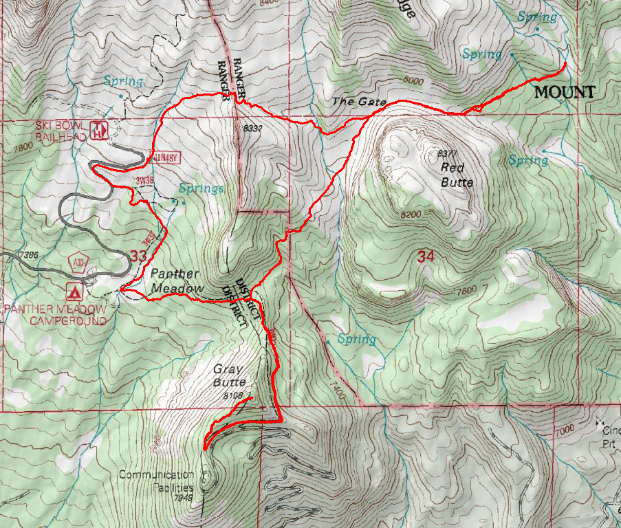 Nine of us headed south to hike up South Gate Meadows to the spring, then back down the canyon and up to Grey Butte for lunch. Finally we hiked down to Panther Meadows, up and over the ridge and back to the cars. It was 70 degrees when we started and stayed around there for most of the hike, until we got back near the cars. Panther Meadows, being lower, was warmer and it was 80 degrees when we retuned to the cars.
