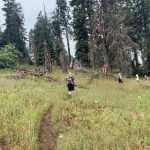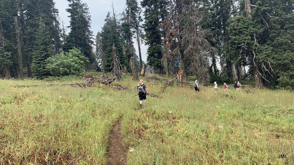 Although the McKinney fire didn’t shut down this section of the PCT, smoke from the fire did cover the Greensprings, preventing our usual views of surrounding mountains. Still this was a refreshing hike with the fresh smells and moving through the wet grass and plants and into damp forests. It was quite a change from our normal drought conditions.
