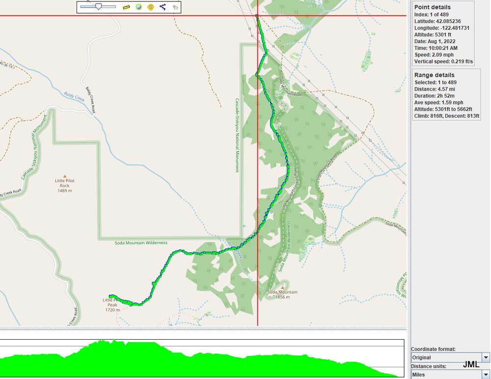 This short local hike came to 4.6 miles out and back with just 350′ of gain.