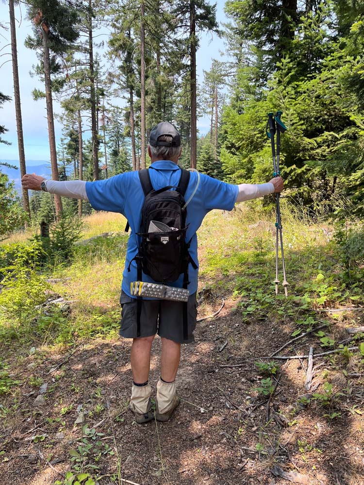I took elevation readings and got 4,250′ at the TH, 5,000′ at the ridge and 4,750′ at the lunch spot.