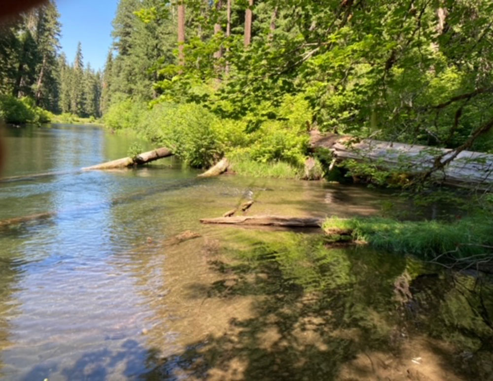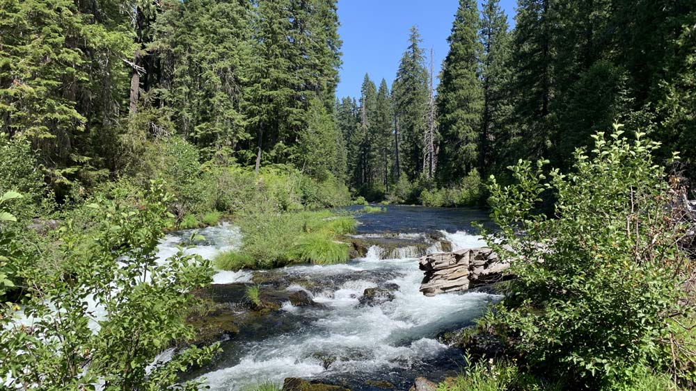 As the trail meandered we went from the river to Union Creek and then back to the Rogue. You wouldn’t notice the change if you didn’t have an eye out for the confluence where river and creek meet. (There’s a large fallen white log across Union Creek where it flows into the Rogue.)