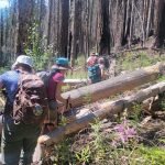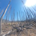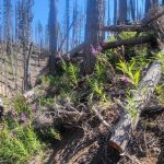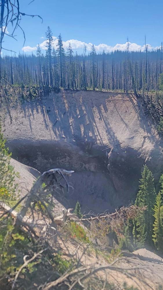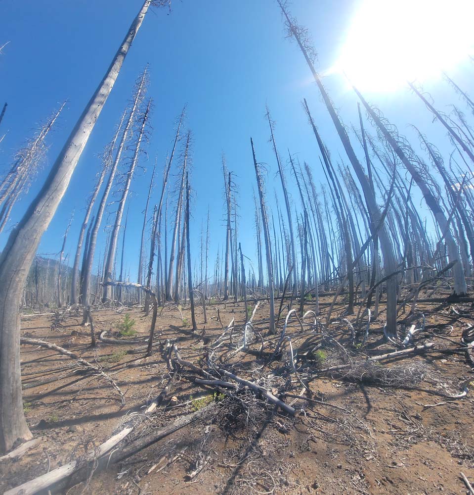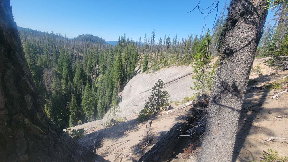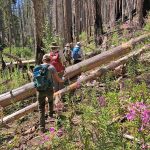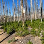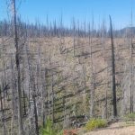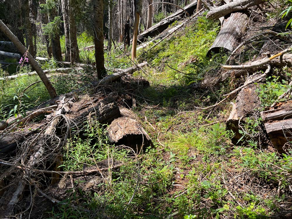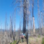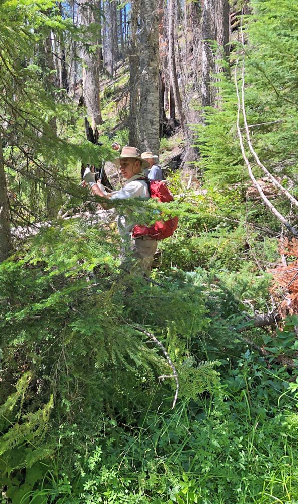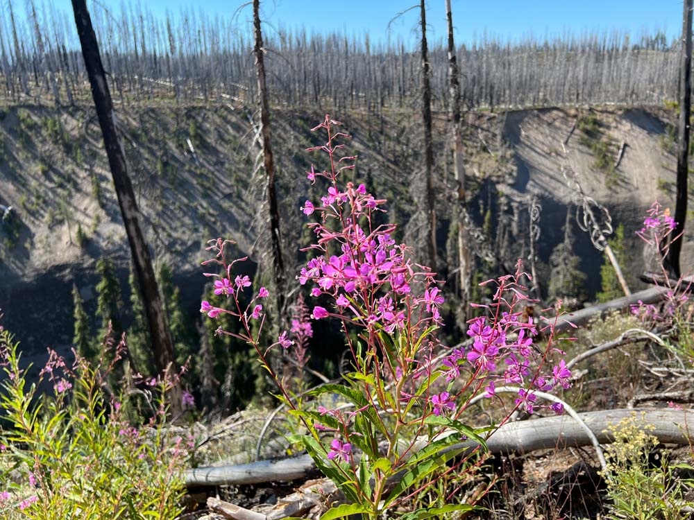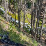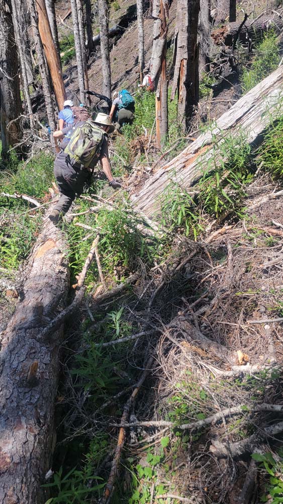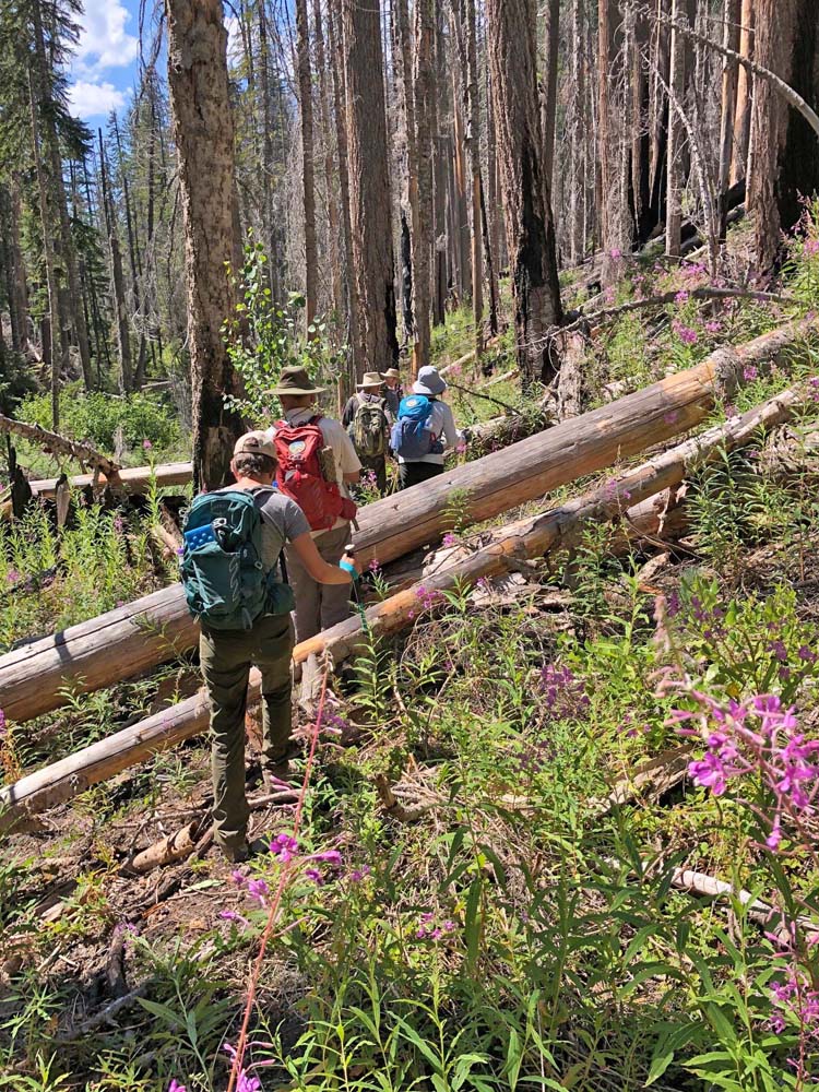The trail was in good shape with lots of 3 to 4 foot small lodgepole pine trees coming out of the ashes from the fire in the area. As we