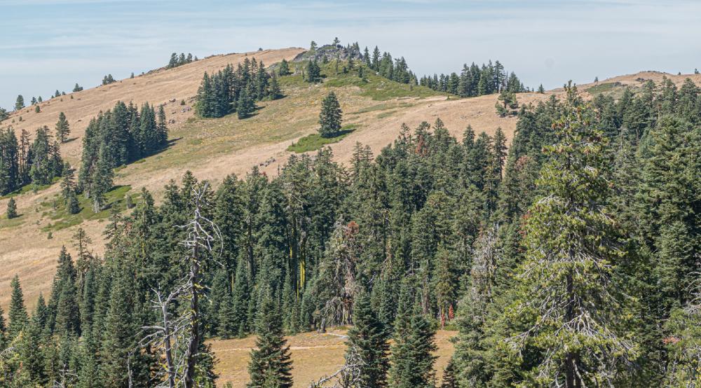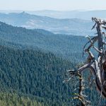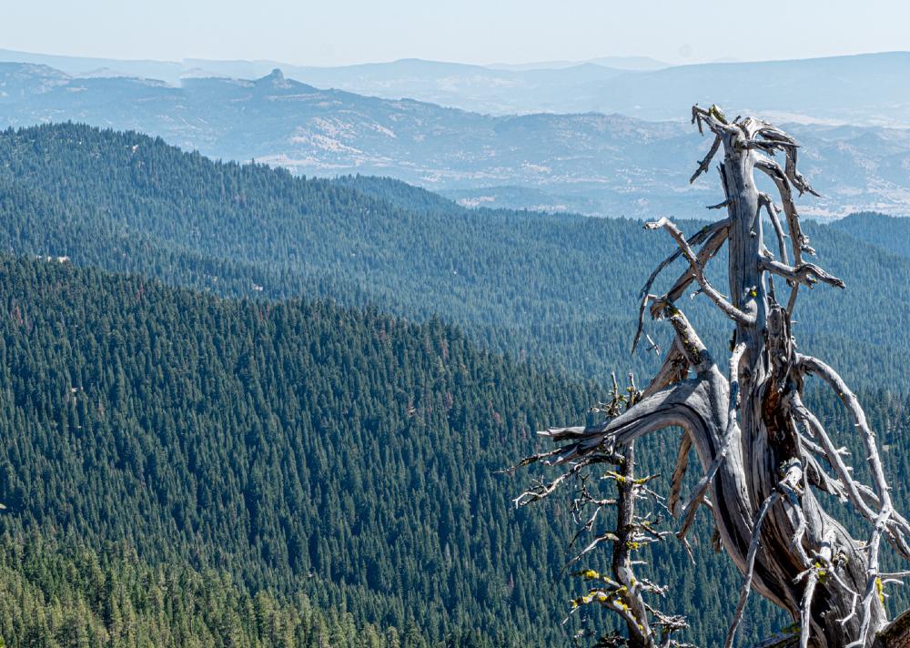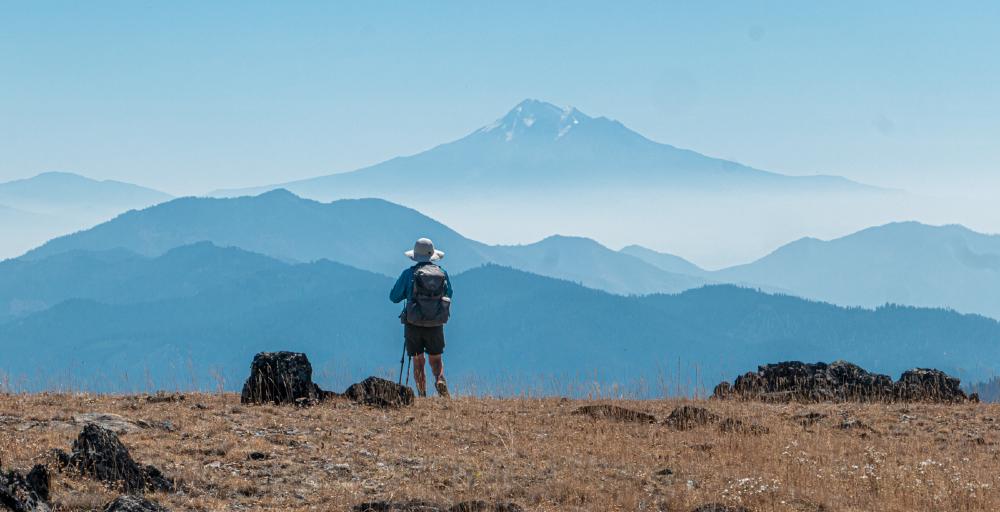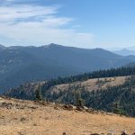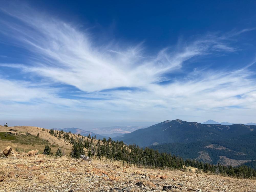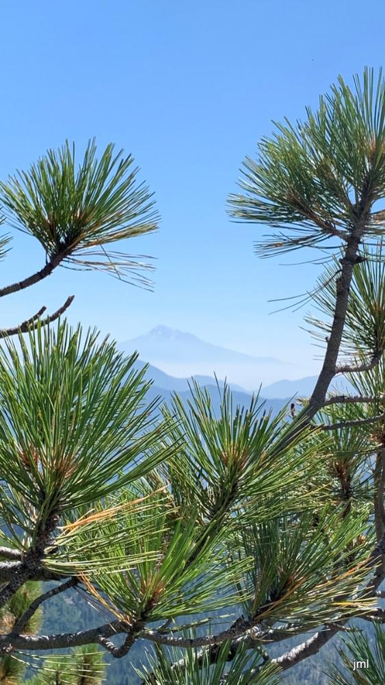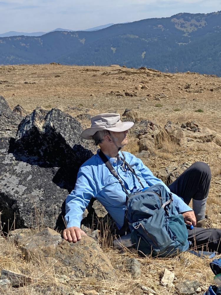 With the summit in sight we scrambled up from the trail to our lunch spot at over 7,000′. From there we could see Mt. Ashland and Pilot Rock to the east and Mt. Shasta through haze to the south. The view to the north was sad with smoke moving into the Rogue Valley and beyond that thick smoke from Rum Creek spreading across Josephine County.