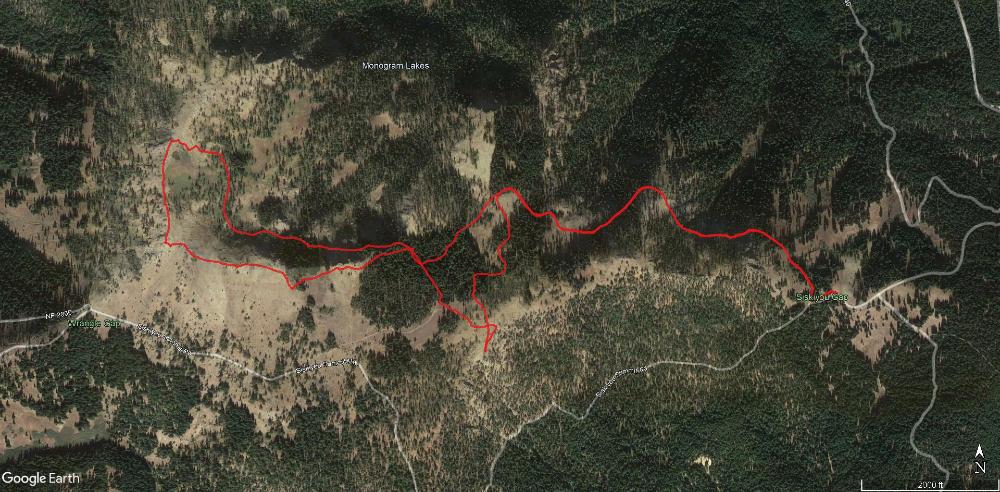 Hiking to over 7,000′ we were above the smoke filling the valley from the growing Rum Creek fire.