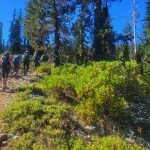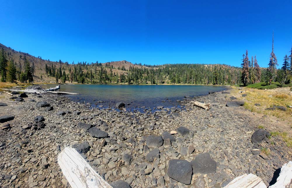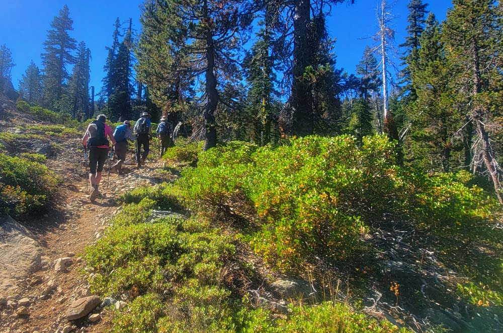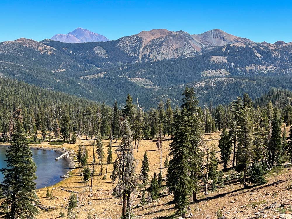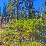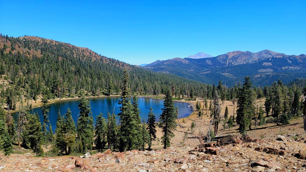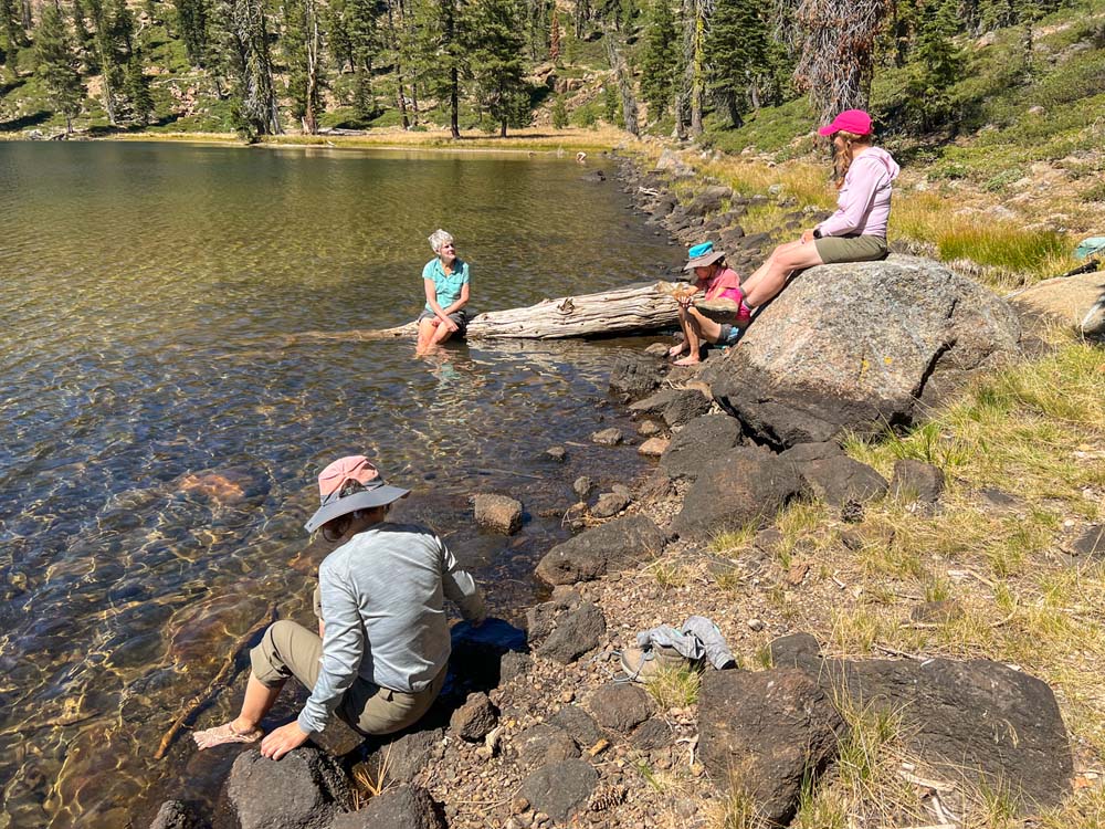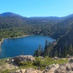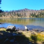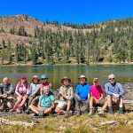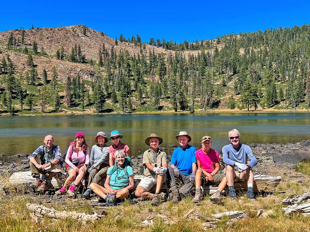 Nine of us headed south to escape the smoke of the Rogue Valley. We hiked from Kangaroo Lake to Bull Lake. It turned out to be a wonderful, clear day with no smoke in the area, although there was lots of smoke as we drove to the trailhead. The trail was perfect for us recovering from last week’s hike. We did see one other couple on the trail for a few minutes, but they headed off trail, so basically we had the entire hike to ourselves. Upon reaching the overlook to Bull Lake, we had great views of Mt. Shasta and Mt. Eddy. At other points we had views of Mt. McLoughlin, Pilot Rock and Lover’s Leap. There was much discussion as to which way on the PCT got you to Mt. Eddy, but we finally saw a sign that resolved the question.