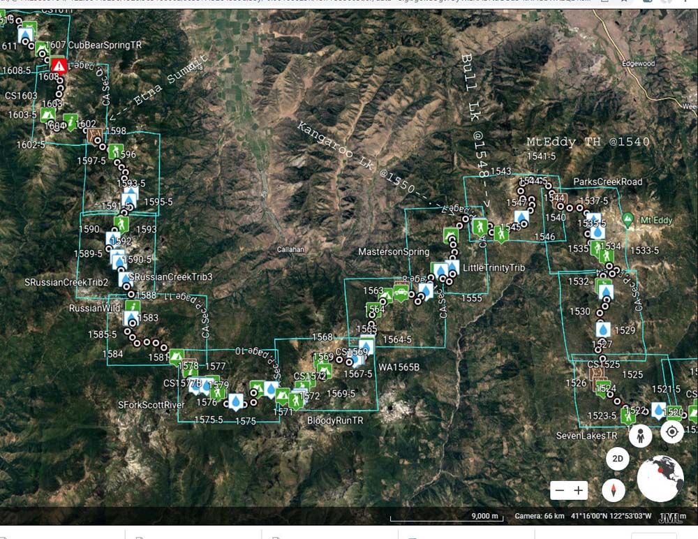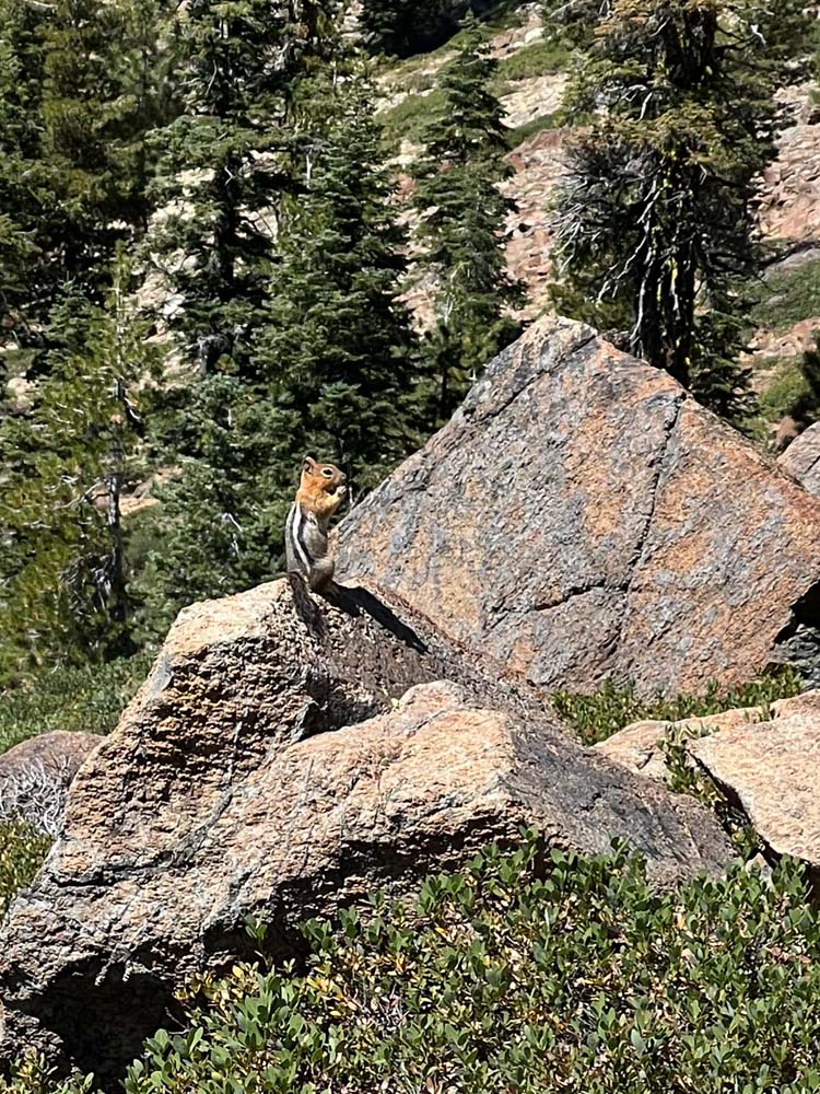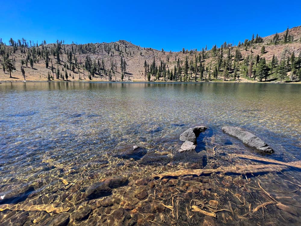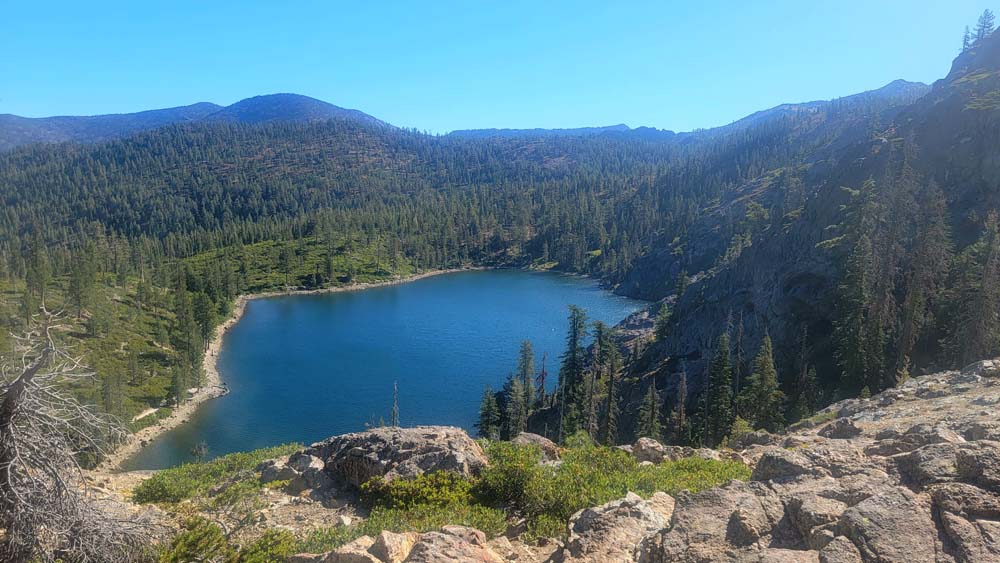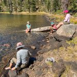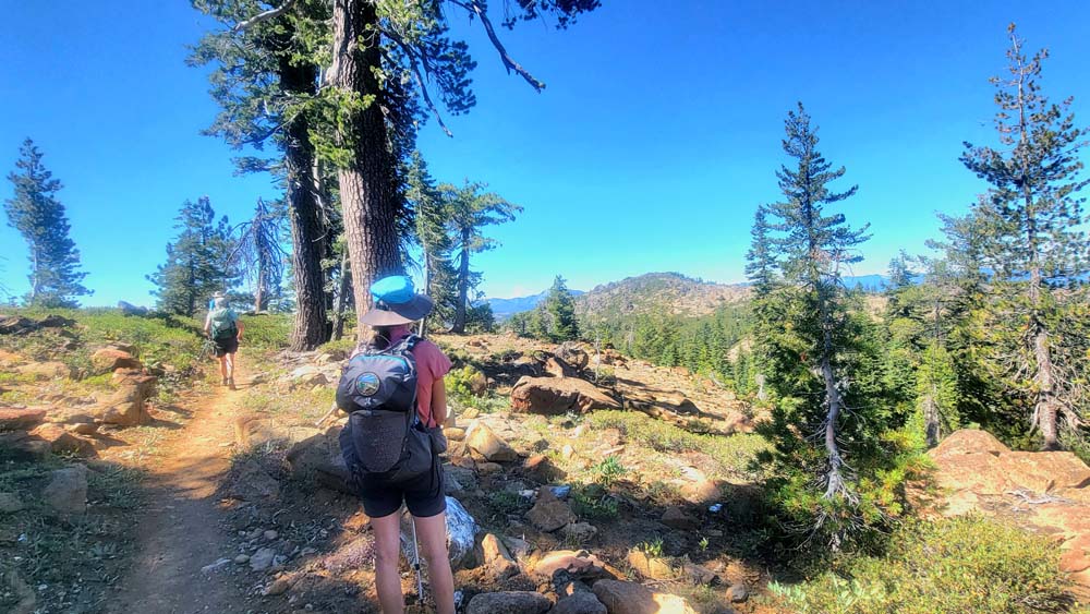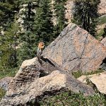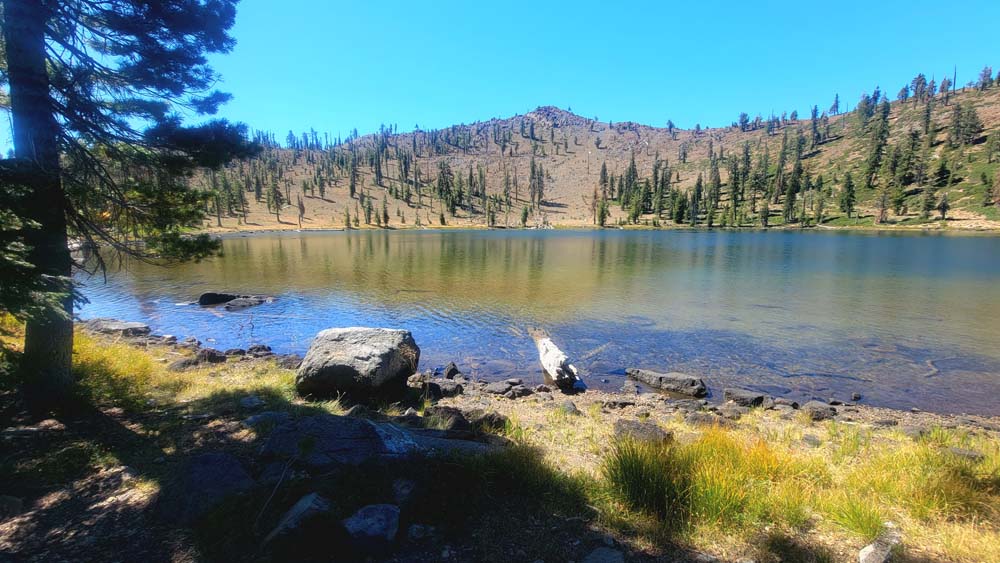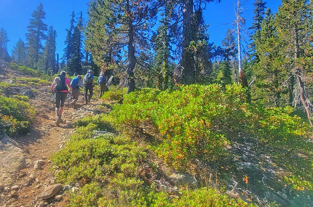 Nine of us headed south to escape the smoke of the Rogue Valley. We hiked from Kangaroo Lake to Bull Lake. It turned out to be a wonderful, clear day with no smoke in the area, although there was lots of smoke as we drove to the trailhead. The trail was perfect for us recovering from last week’s hike. We did see one other couple on the trail for a few minutes, but they headed off trail, so basically we had the entire hike to ourselves. Upon reaching the overlook to Bull Lake, we had great views of Mt. Shasta and Mt. Eddy. At other points we had views of Mt. McLoughlin, Pilot Rock and Lover’s Leap. There was much discussion as to which way on the PCT got you to Mt. Eddy, but we finally saw a sign that resolved the question.