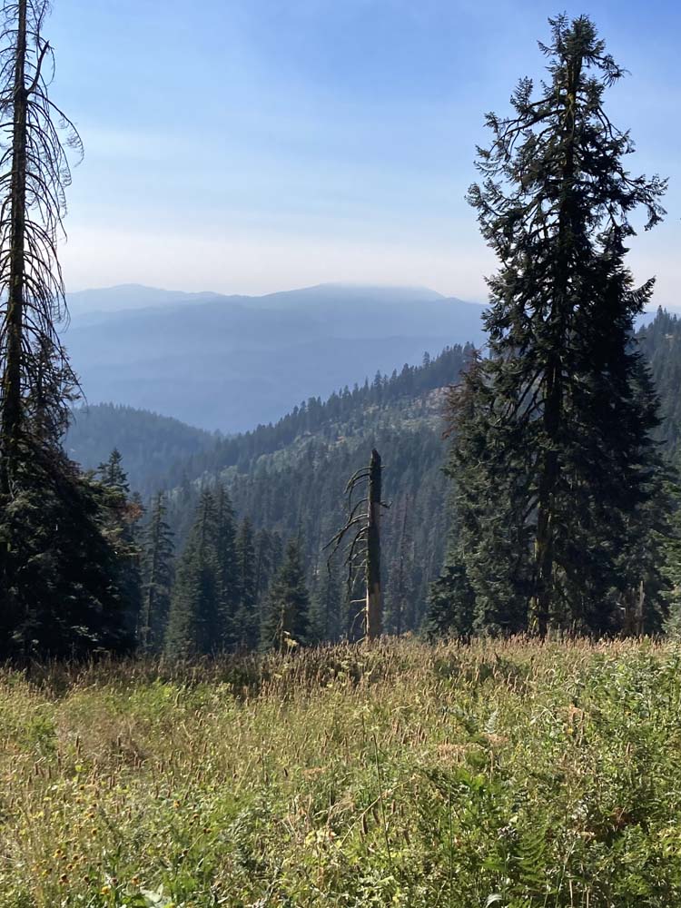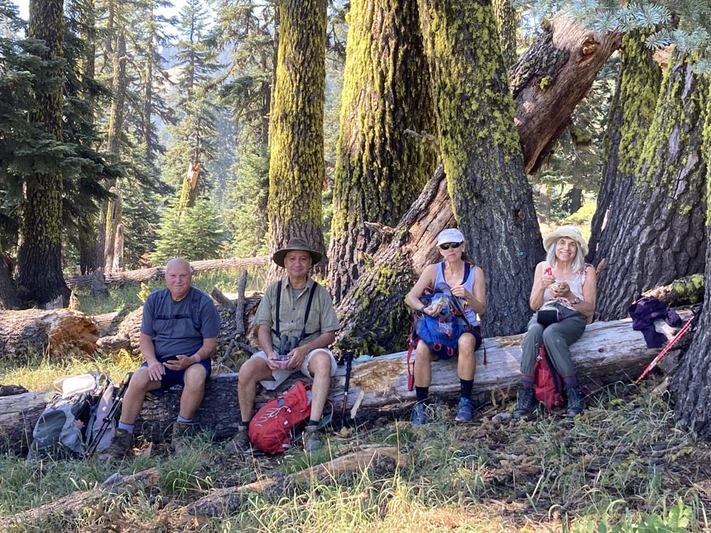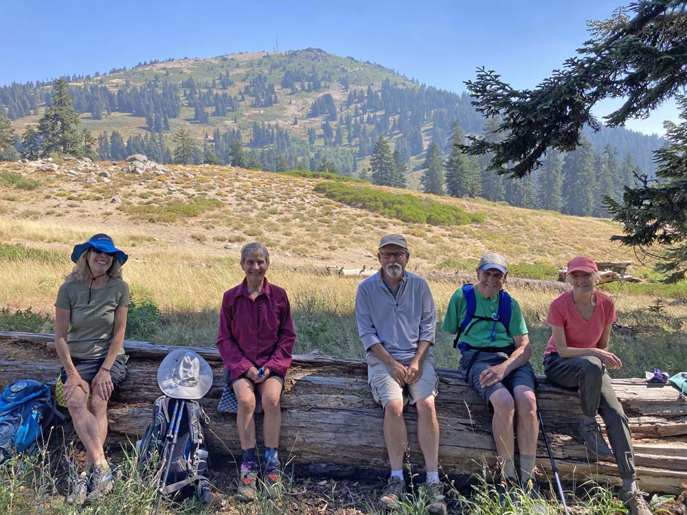 he Labor Day hike on the PCT to Grouse Gap was both surprising and very pleasant. Surprising because an anticipated small group turned into 10 hikers as my phone showed 9:00 AM. We welcomed Barry and Marilyn from Wednesdays, Phyllis who finally got a good night’s sleep, and newbie Nea, a vice Principal at the Merlin middle school, escaping the Rum Creek fire smoke to join our hike.