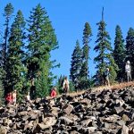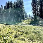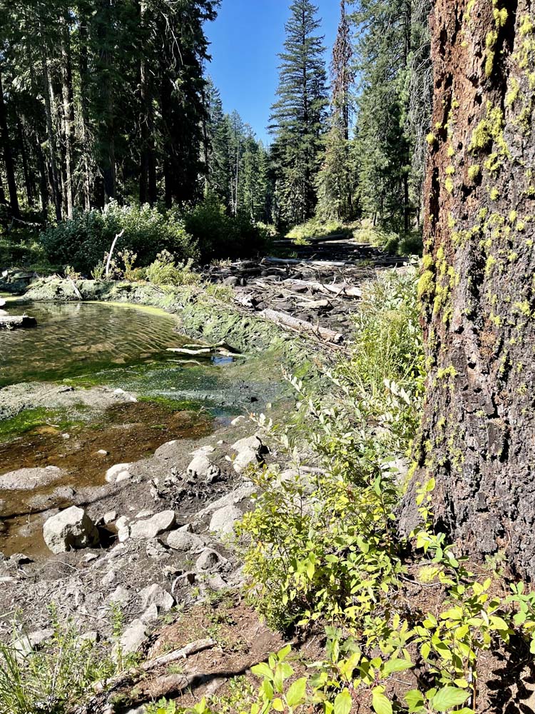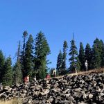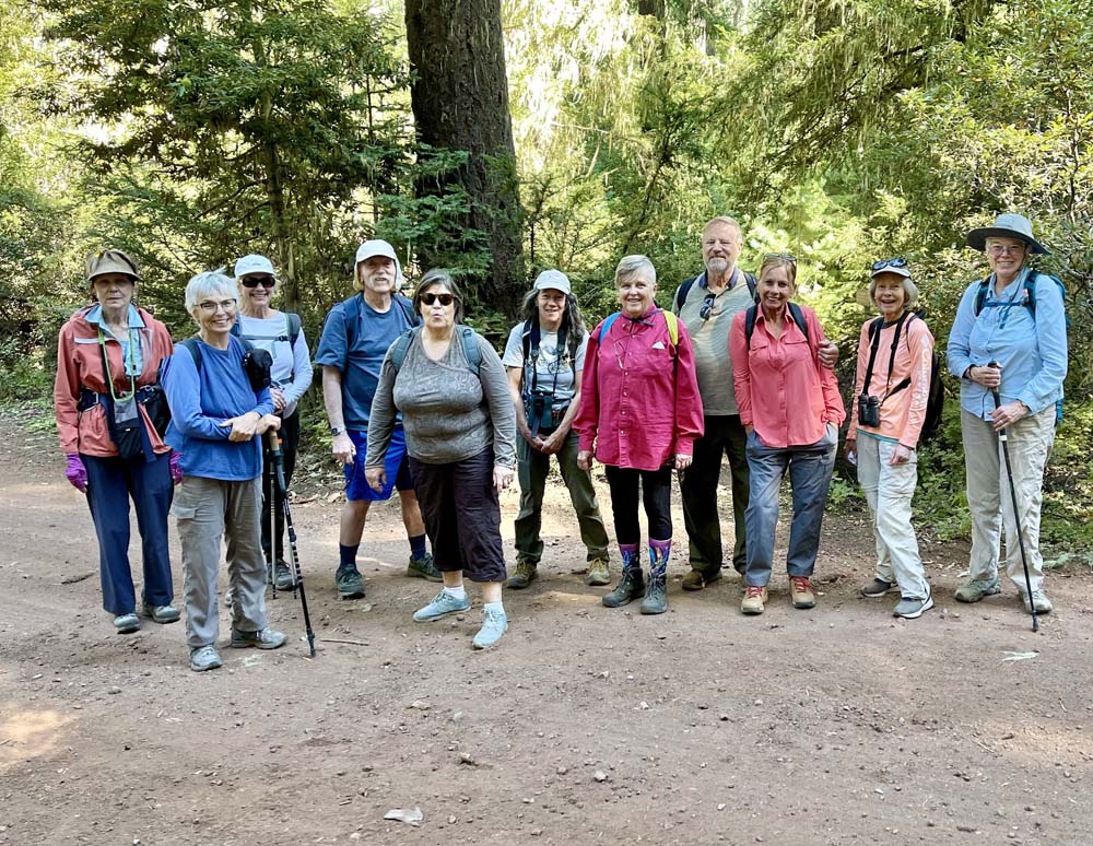 A highlight on the return hike was a Dyer’s polypore mushroom (not edible). Dyers use this fungus to dye wool in red, brown, and yellow colors. Returning we agreed that this hike was a pleasant respite from the smoke and heat of the valley. Total hiking distance: 5 miles, little elevation change.