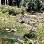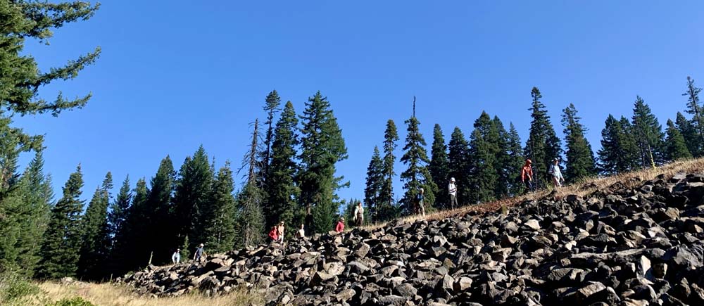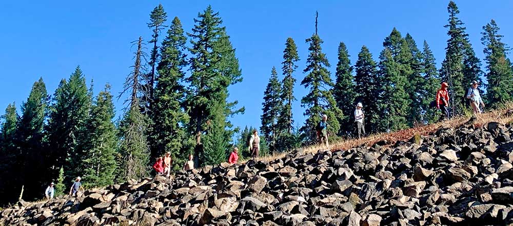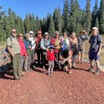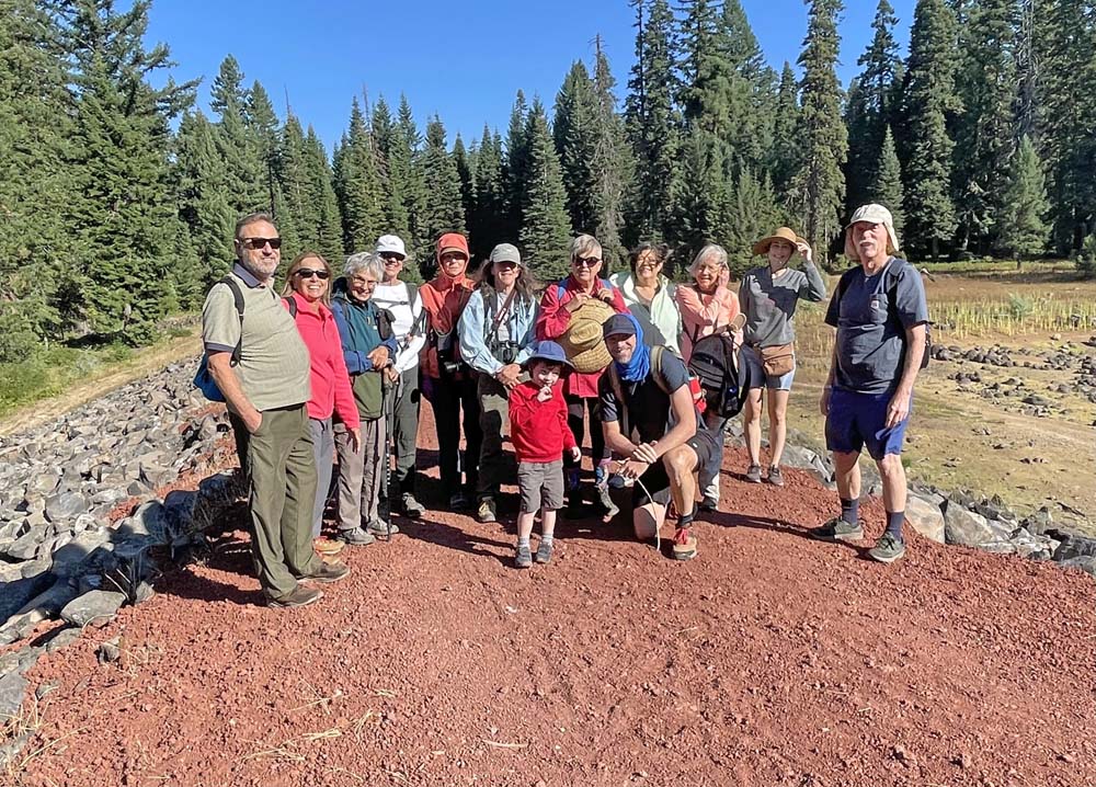 It was a cool day with clear air on the Fish Lake Trail (FS 1013). Fourteen of us hiked up the North Fork of Little Butte Creek. Surprisingly, the creek water was lower than observed just a week before on the scouting trip, and we could now see a beaver dam slowing the water flow.