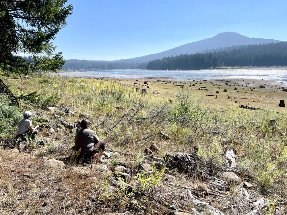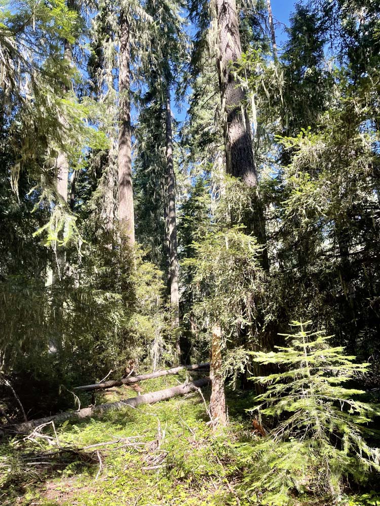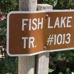 Rejoining the trail to Fish Lake, we walked through the heavily wooded forest. The trail continued with views of Fish Lake. We stopped for lunch on a giant downed log, big enough for all of us to perch on and check out the lake view.