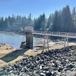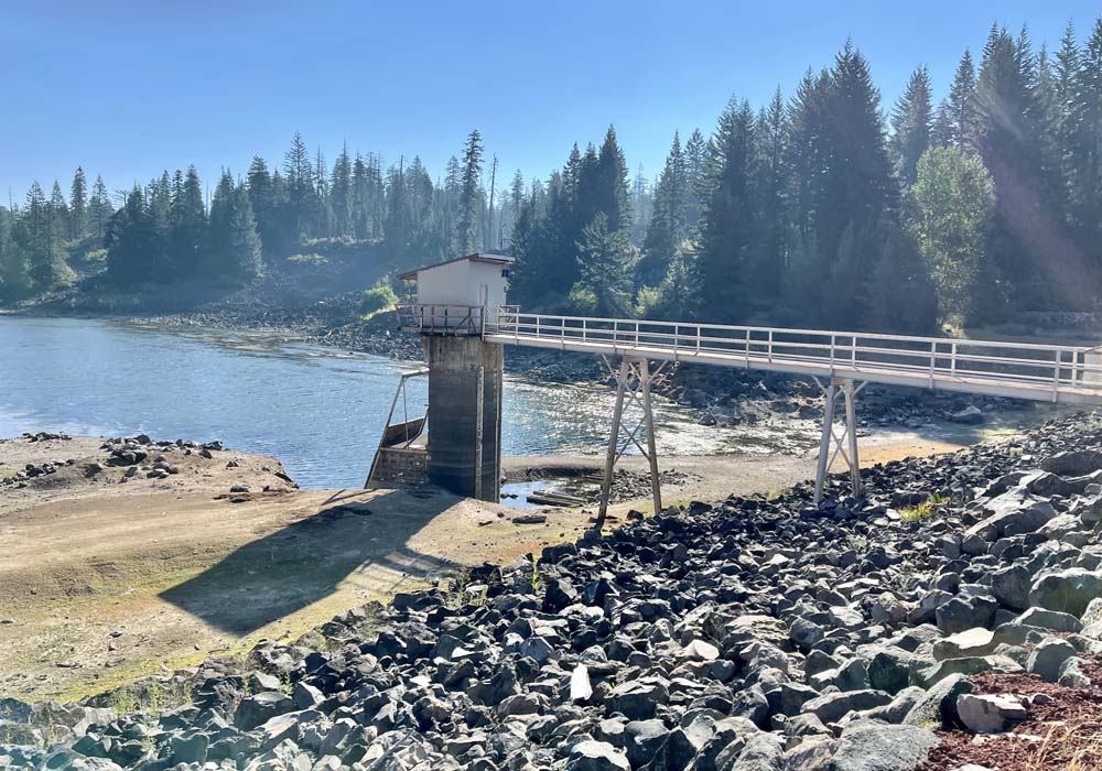At 0.6 miles we took the trail spur to the top of the dam. There was a brisk wind on the dam as we looked across at the low lake water.