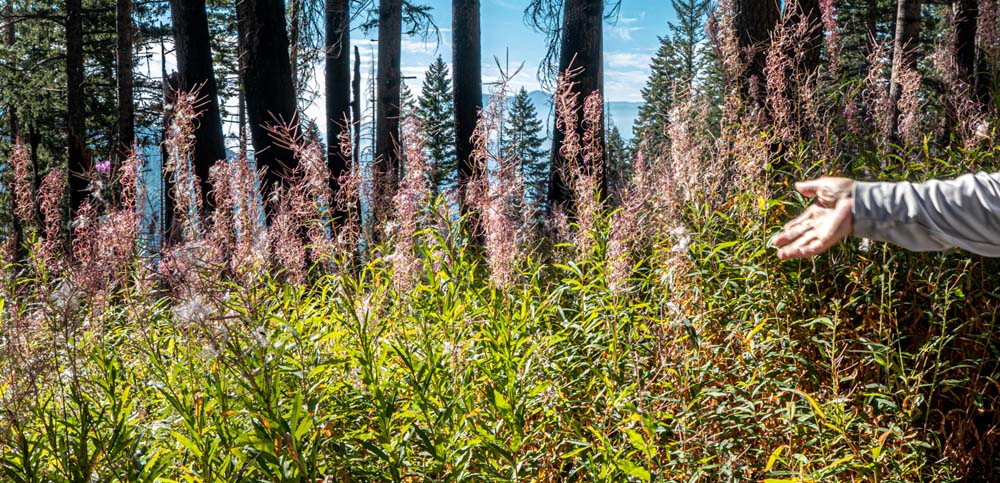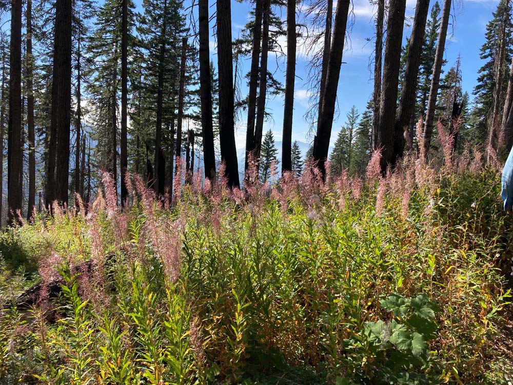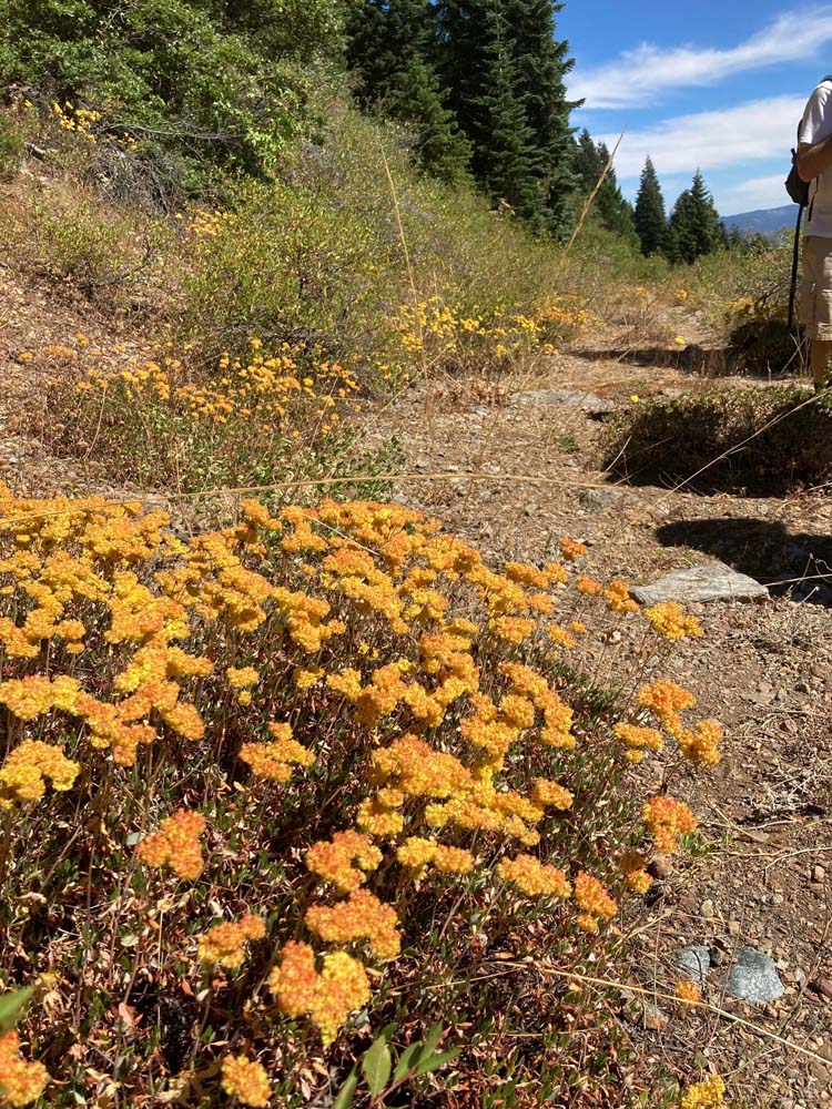 The area is a bit of a rock star in the botanical world with lots of diversity of plant life attracting enthusiasts from far and wide. But on Monday we had the trail mostly to ourselves. Late summer growing conditions offer nothing like spring, but we did see some color along the way, including pink Fireweed, bright yellow Sulfur Buckwheat, white anemone, orange paintbrush and lush green ferns in the shady forests.