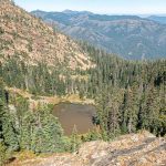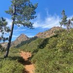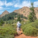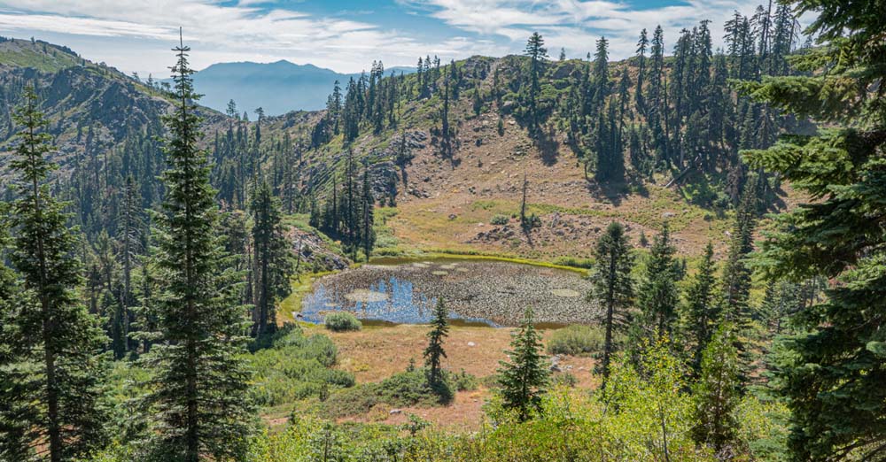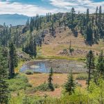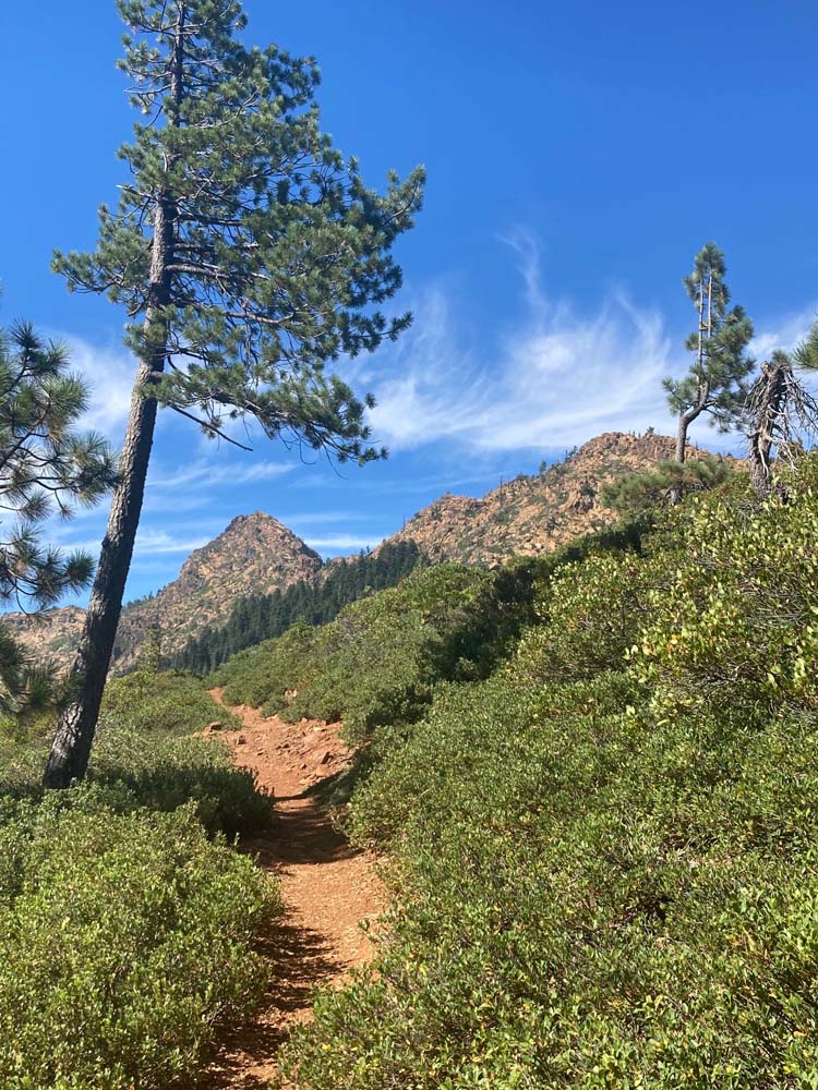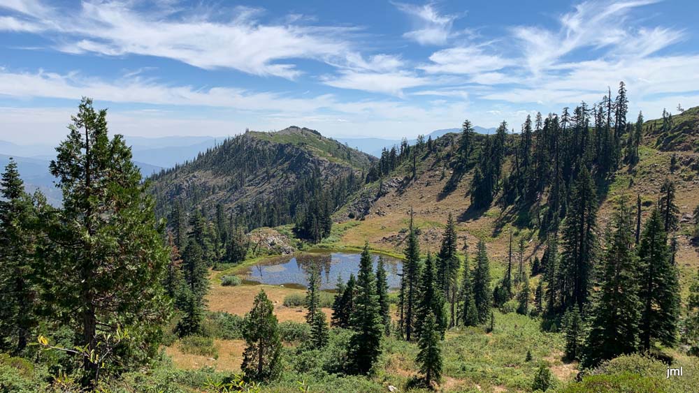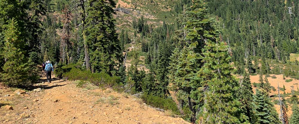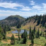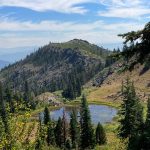 This hike up the PCT is a steady ascent up to 5,900’+ for lunch through the gate at Horse Camp and views of Kangaroo Mtountain, down at Lily Pad Lake and the white back of one of the Red Buttes.