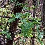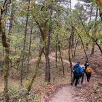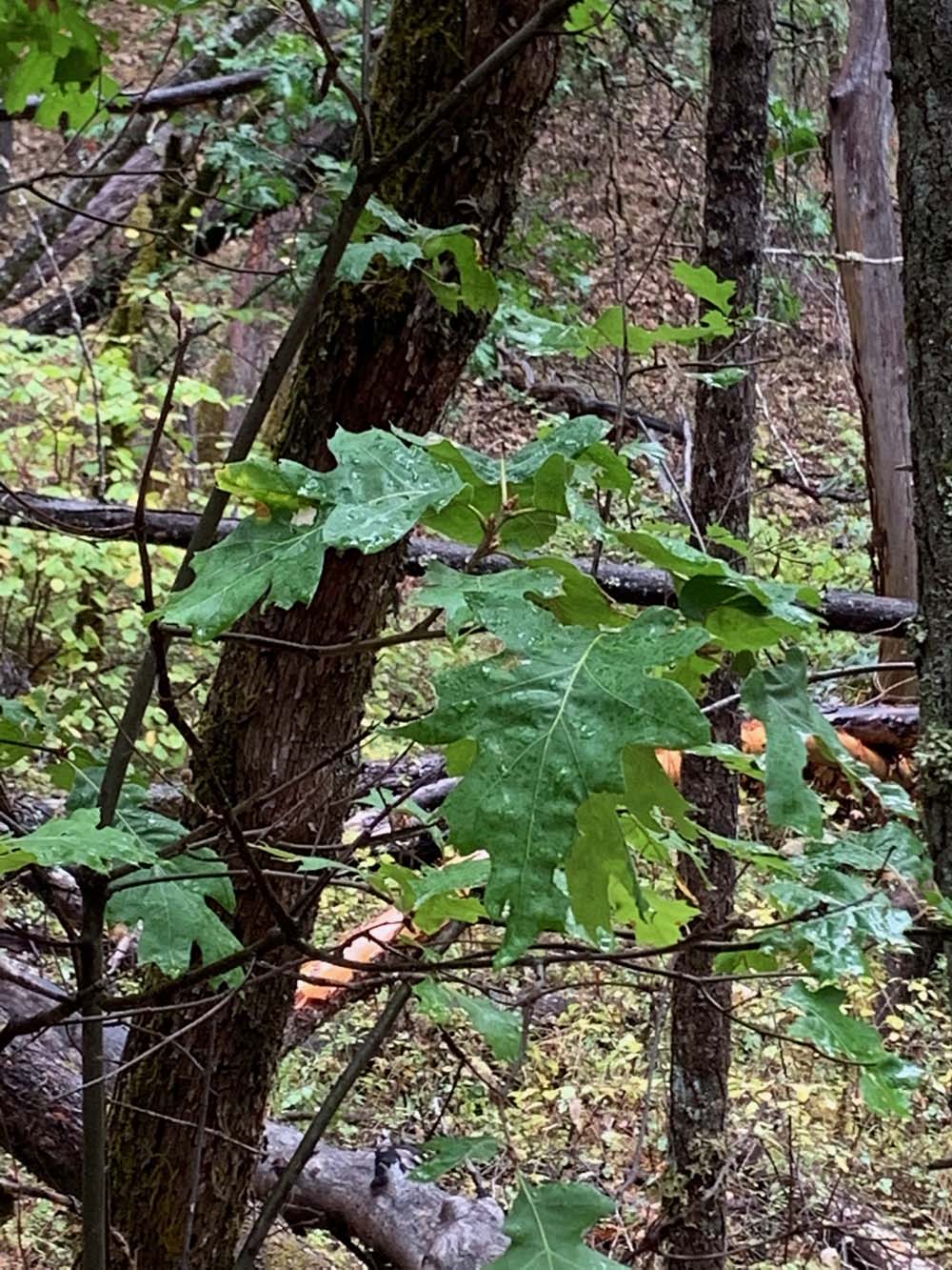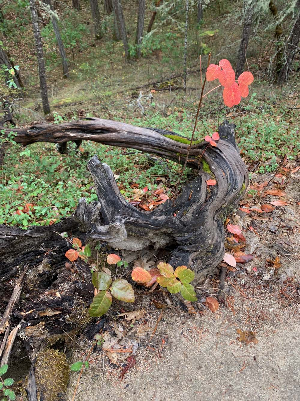 I decided it would be best for our first timers to take the Outback Loop Trail around the perimeter. It was a steady climb up to elevation with many Fall colors up on top. For more height we took the Timber Riders trail up to the Skycrest Loop Trail and stopped for lunch where we had a view of the Oak grove below.