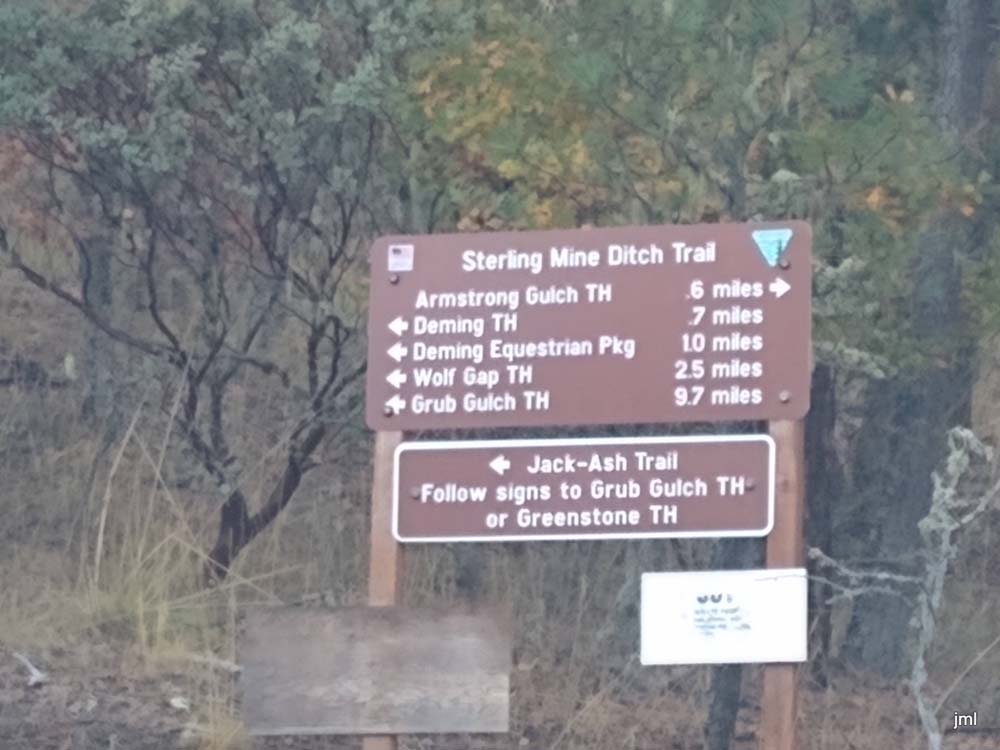 After that we went down the Wolf Gap Trail and out the 6.5 mile stretch of the Sterling Mine Ditch Trail to Randy’s truck. 10 miles total. Track included Wolf Gap to track 002 is the new trail section.