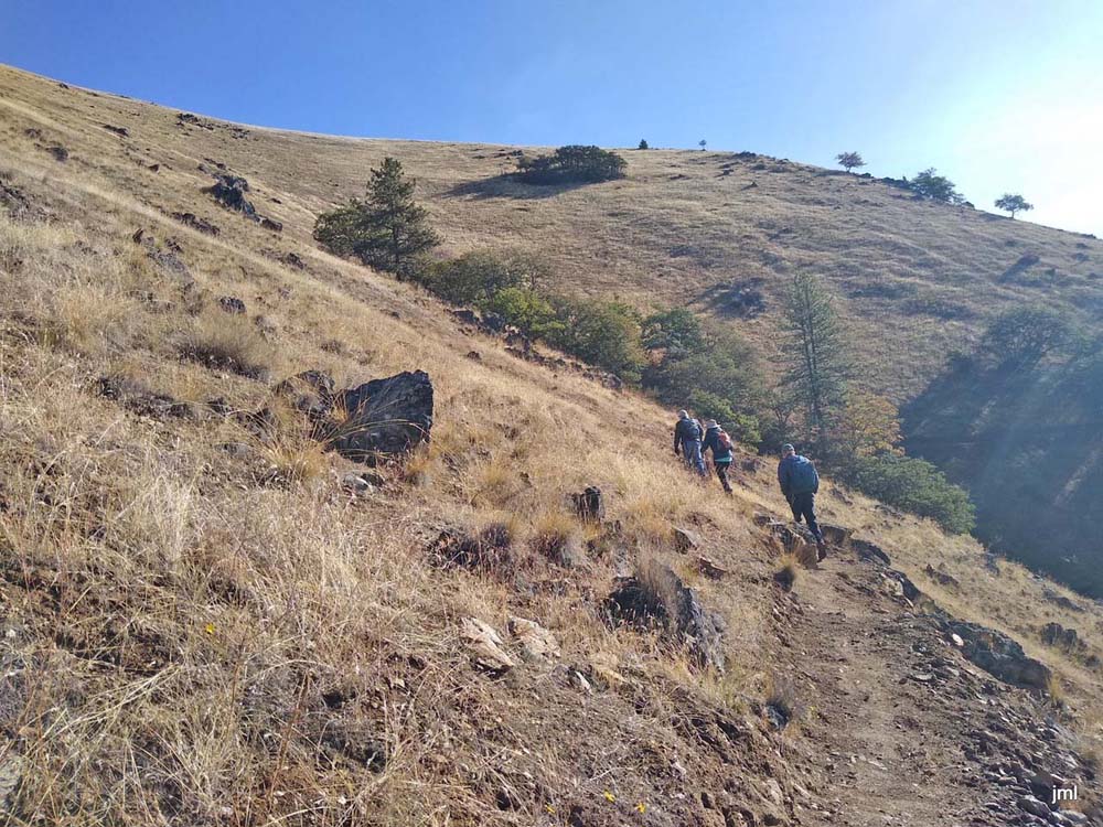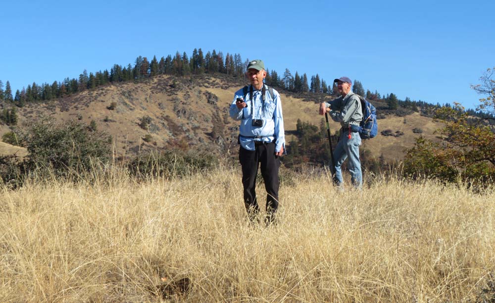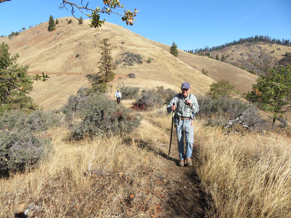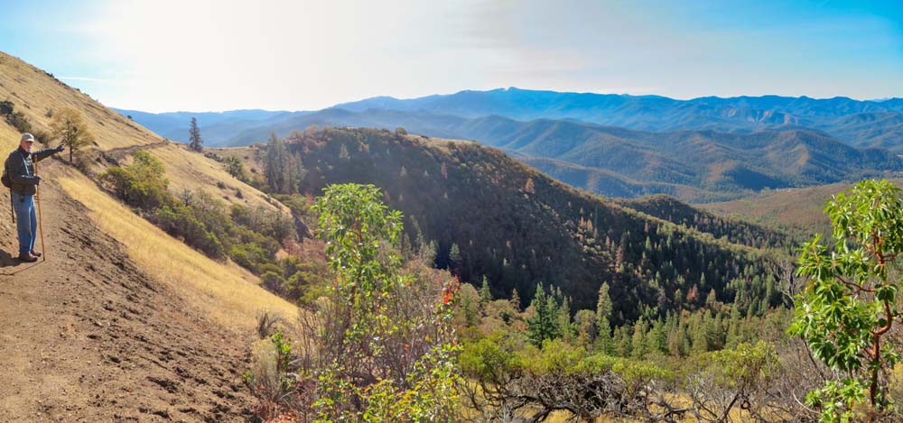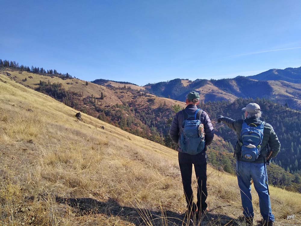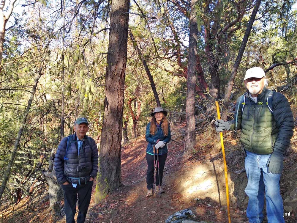 The scouting team went out Thursday morning to explore the new one mile section of the Jack-Ash Trail from Wolf Gap to the Little Applegate Valley viewpoint. It was perfect day for a great view after we drove through morning fog to get to the TH from Jacksonville.