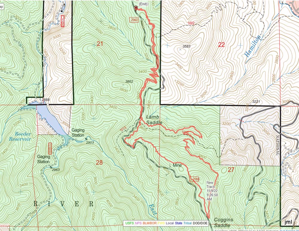 Of course, the scenery was spectacular. What a blessing to live in an area that has wonderful forests, four seasons and late fall colors with snow. Speaking of snow, I was fairly confident that an inch or two of snow would keep Wednesday biking to zero. In fact, we were surprised by a group of 3 downhill bikers on the upper, snow-covered section of Cutback, and then 4 additional bikers at the top of Cutback conversing on how to progress down the snowy path. No bikes on Marty’s.