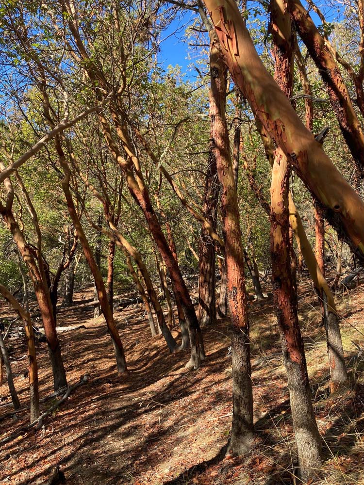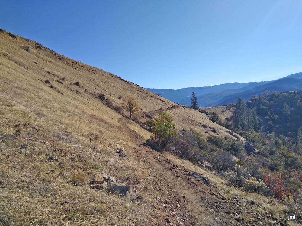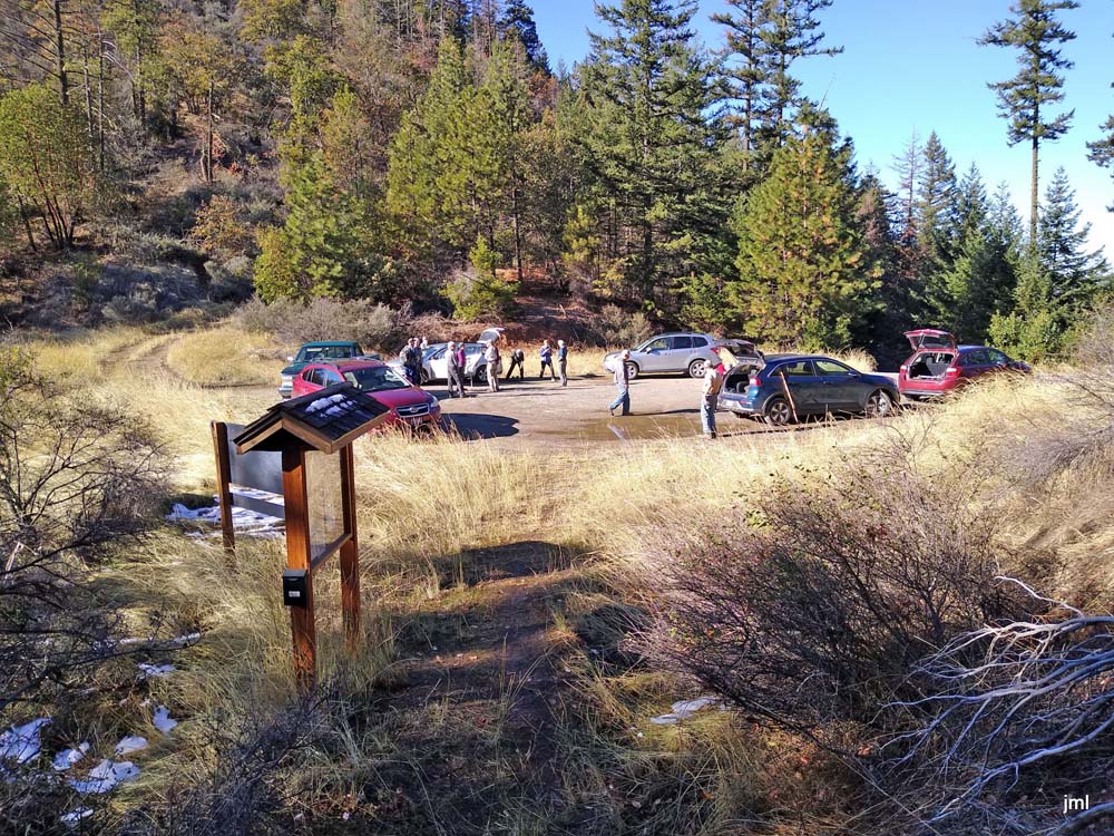 There seemed to be a lot of interest in this new short hike as 13 turned out to join the adventure. We were exploring the new section of the Jack-Ash Trail out from Wolf Gap. A one mile stretch that starts with a short climb on the Wolf Gap Trail, then the new trail splits off to the left. You continue going up through Oak woodlands, then break out into the sun as the trail levels out with views of the Little Applegate valley and the Siskiyous mountains across the valley.
