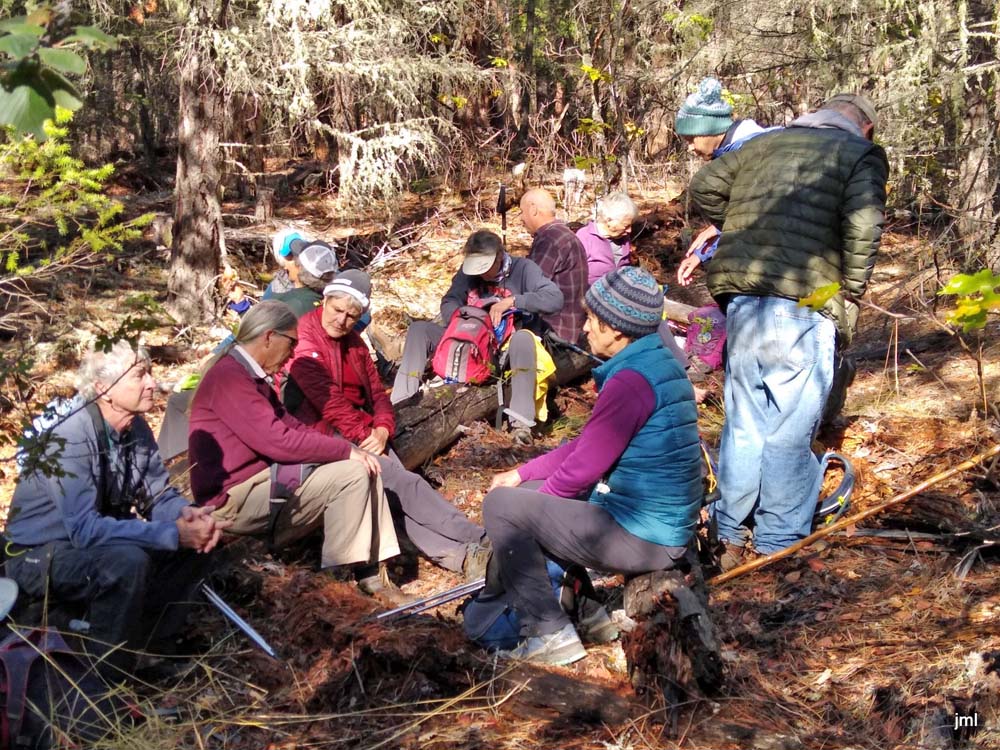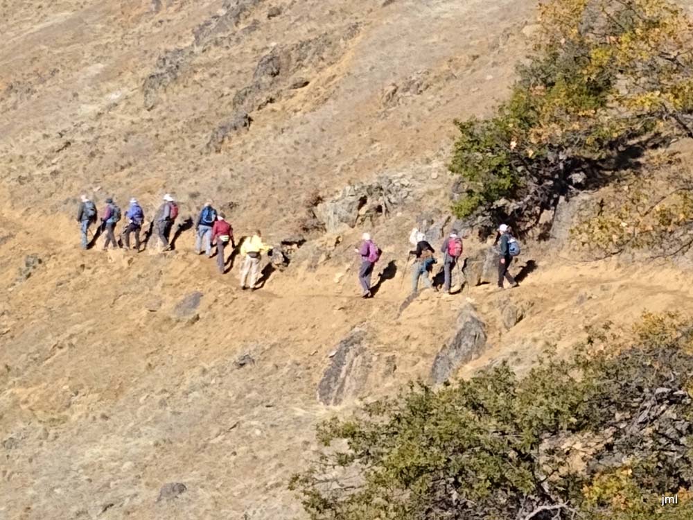 We had scouted the new spur a couple of weeks back and on that day had done 10 miles (6.5 miles on the ditch trail). Judging that was too much for the Mondays, we came up with a 5+ mile hike first out the new spur then down and up the Wolf Gap Trail adding another 3+ miles. There was a bit of a grumble about uphill after lunch, but everyone made the climb back up to the parking area and we saw smiling faces all around.