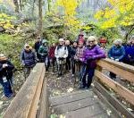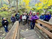 Fifteen hikers climbed into and around our wonderful watershed in the Oredson-Todd Woods. We started on Clay Street, crossed Clay Creek, and followed the trail up to the Oredson-Todd trail. We continued on the Upper Trail past the “waterfalls” and on up toward White Rabbit to continue up Mike Uhtoff trail to the 2nd bench overlooking Ashland. We returned by way of Cheshire Cat, Mike Uhtoff, Lower Clay Loop, and Lower Oredson-Todd trails, completing a loop back to Clay Street.