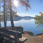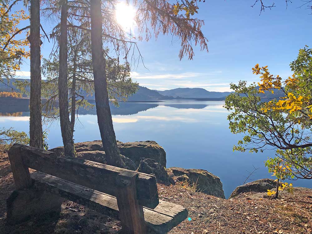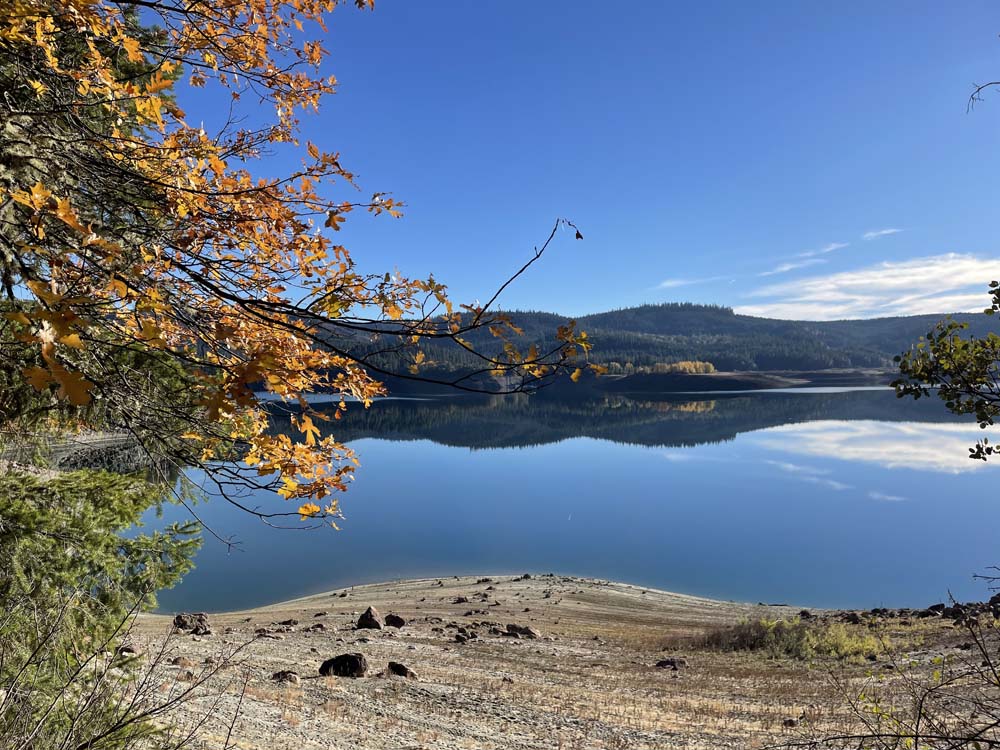 Lunch was shared in good company at our usual bench spot. With our stellar weather conditions, the lake reflected like a mirror and the brilliant fall color of the Oak trees illuminated our trail. Thanks to the birders and a botanist amongst us, we had plenty to admire and learn from along our way.