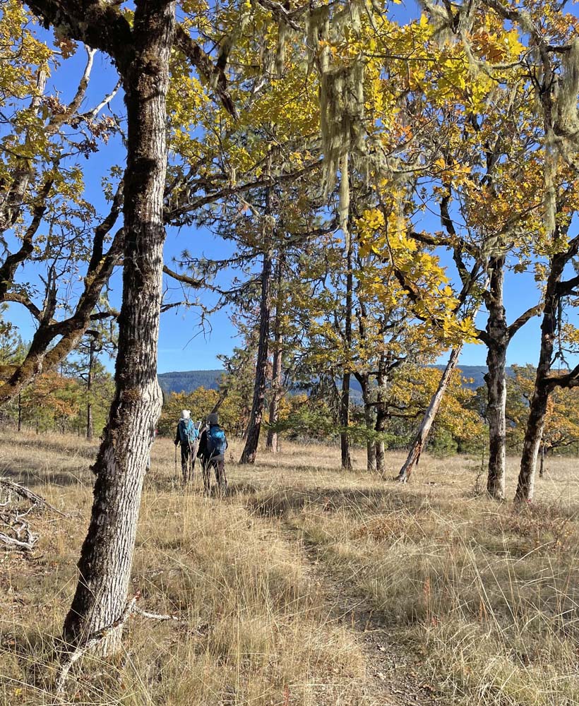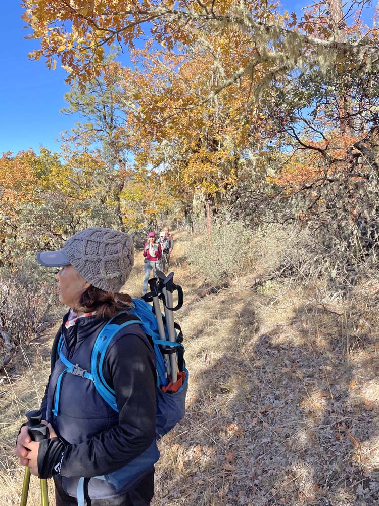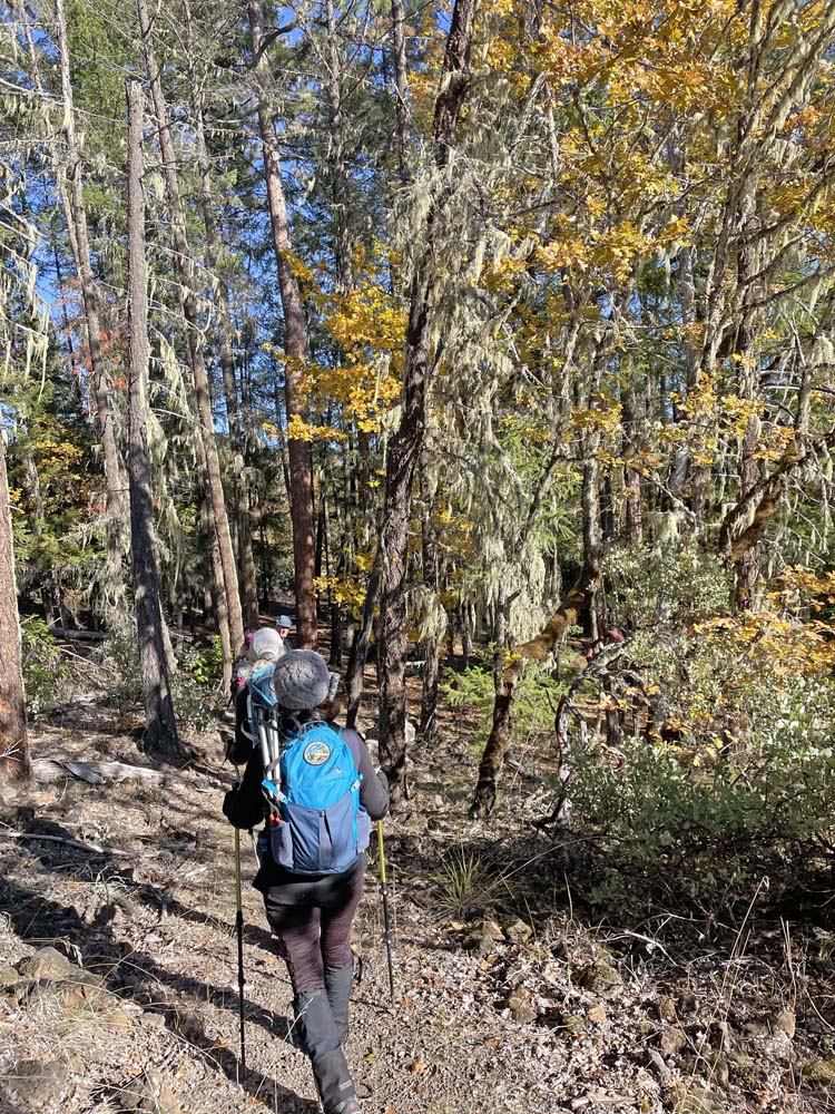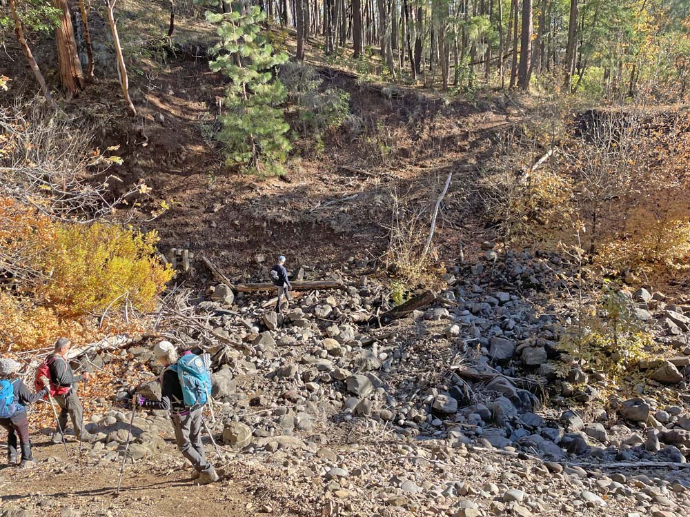 Over all the trail was in good condition with only a couple small downfall and one of the bridges still barricaded. Even though the bridge wasn’t accessible, we were able to hike down and cross the dry creek bed. Since the descent to the creek bed was a bit muddy, it was an opportunity to put our poles to good use.