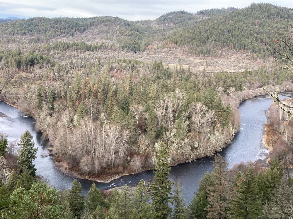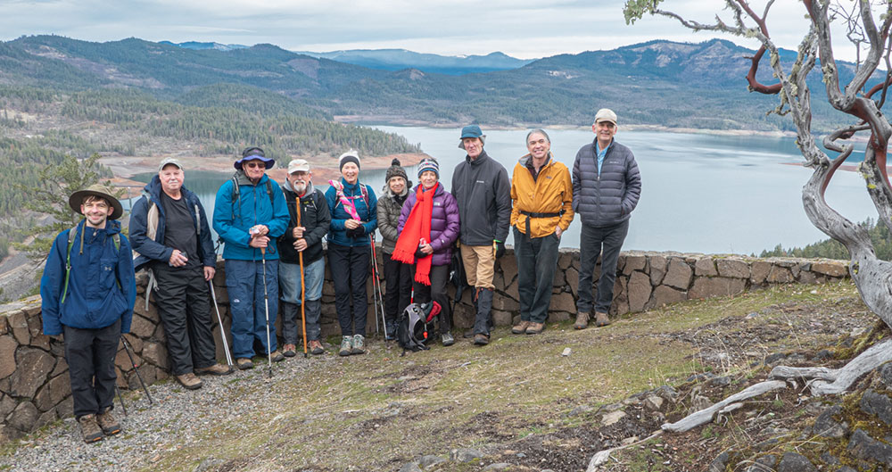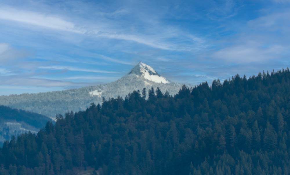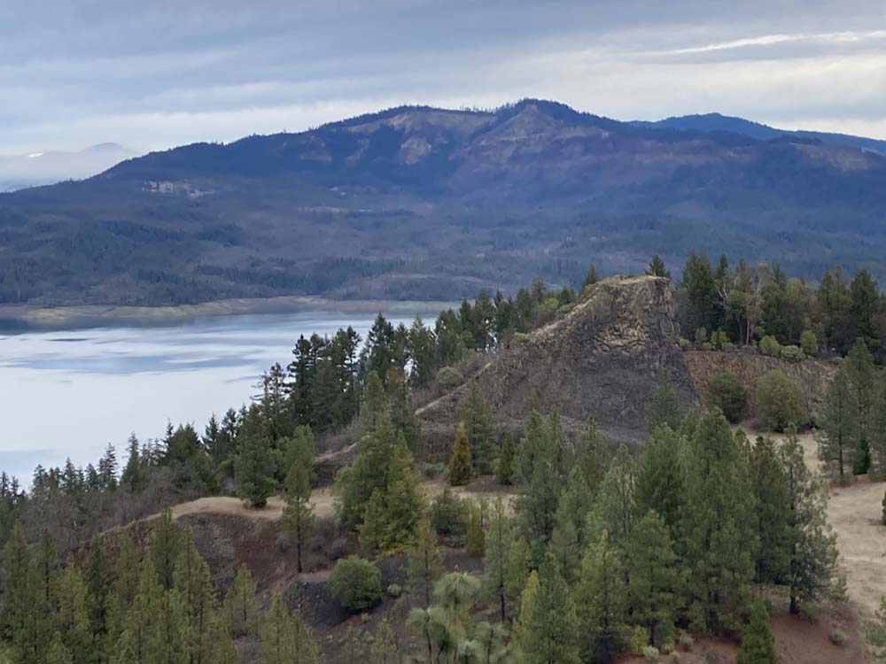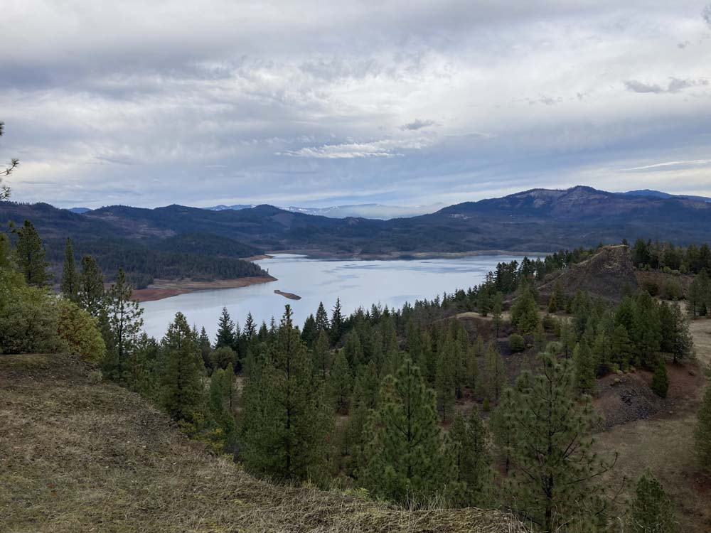 But up we went in good spirits and glad that we didn’t get any rain or snow on the hike. Although it was overcast we had clear views of Lost Creek Lake and could see all the way to the sharp peak of Mt. Thielsen with sun shining off the south facing slope.