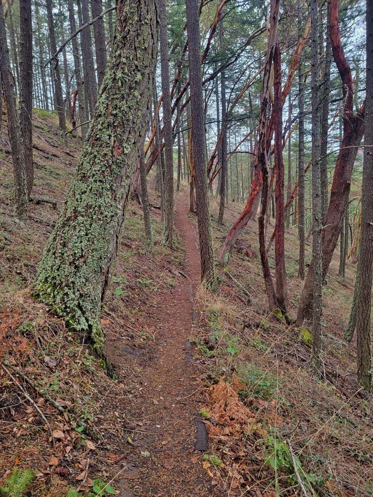 Today 6 of us decided to brave the high winds and take a hike above Ashland in the Oredson Todd Woods. We were greeted at the trailhead by Heath, an enthusiastic Chocolate Lab who volunteered to be our hike leader. A lady told us he lives in the area.
