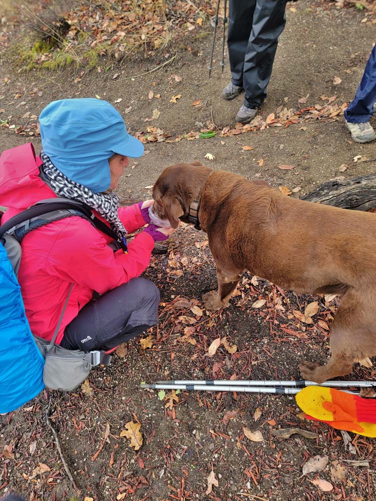 After the hike, I sent a picture of the group with Heath to the phone number that was on his tag. I thanked them for allowing Heath to hike with us. The response was, “Awesome, thanks for taking him. He lives a great life.” I let them know he did 5.5 miles. The response was “The old man’s still got it” That led me to ask his age. He is almost 11 years old. He is such a good boy.