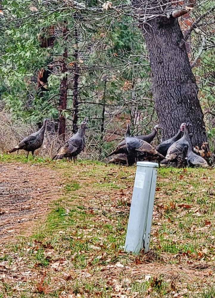 After going further down the trail, Heath started going a different direction. We figured he had been with us the whole day, so I called to him and he came back and joined us all the way back. We were getting towards the end of the hike and it sounded a little like firecrackers going off. It was another tree cracking in the wind. Once we reached the part of the trail where you can see the homes, Heath took off and headed home ignoring the turkeys.