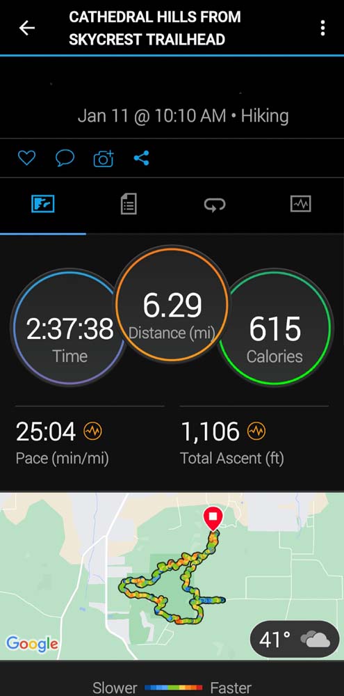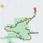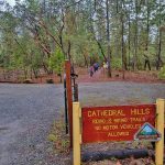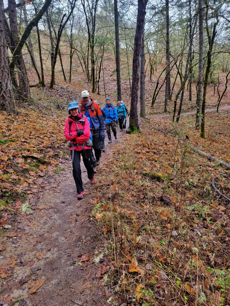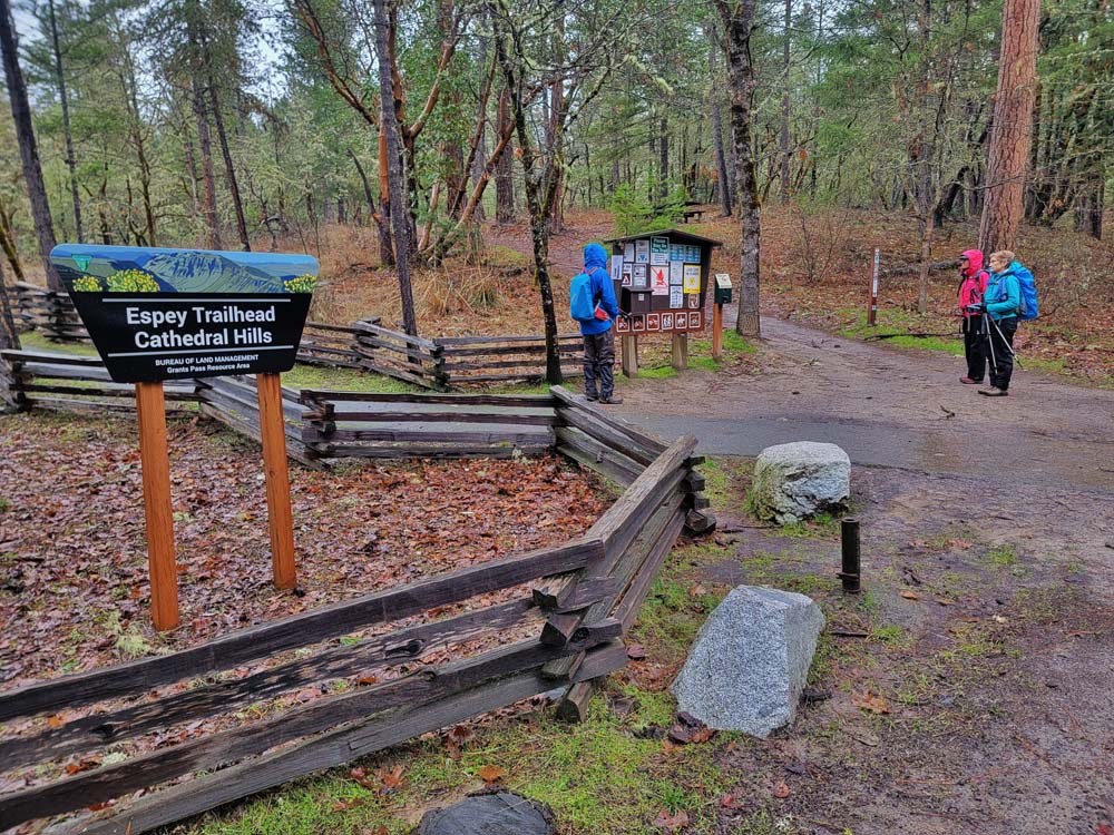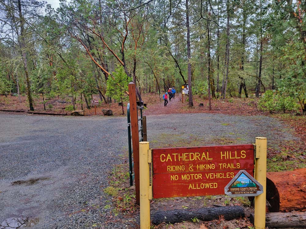 oday, seven of us drove to Grants Pass to hike in the Cathedral Hills from the Skycrest Trailhead. We saw several people with dogs coming and going, but we took a different trail than what they were using. We went in a clockwise direction around the outer trails starting on the Outback Loop trail then connected to the Hogback Trail. We then connected to the Cloverlawn Loop.