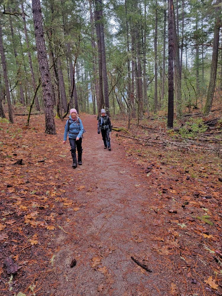 We again continued on the Cloverlawn Loop to the Lower Hogsback Trail to the Backside Loop. About 2.75 miles into the hike, it started to rain. We then went down to the Epsey Trailhead. This is the most common and busiest trailhead with a parking lot and bathroom. We ate our lunch at a picnic table. We had a short lunch as the rain continued.