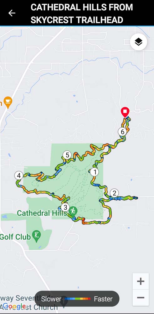 The group humored me to check out each of the main trailheads and we went down the steep Walker Trail to the Walker trailhead, which is not signed, but has a nice parking lot. I don’t remember if there is a bathroom there. It is in more of a residential area. We then turned around for our steepest climb of the day and went back up the way we came down.