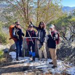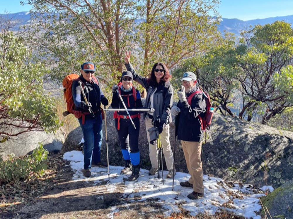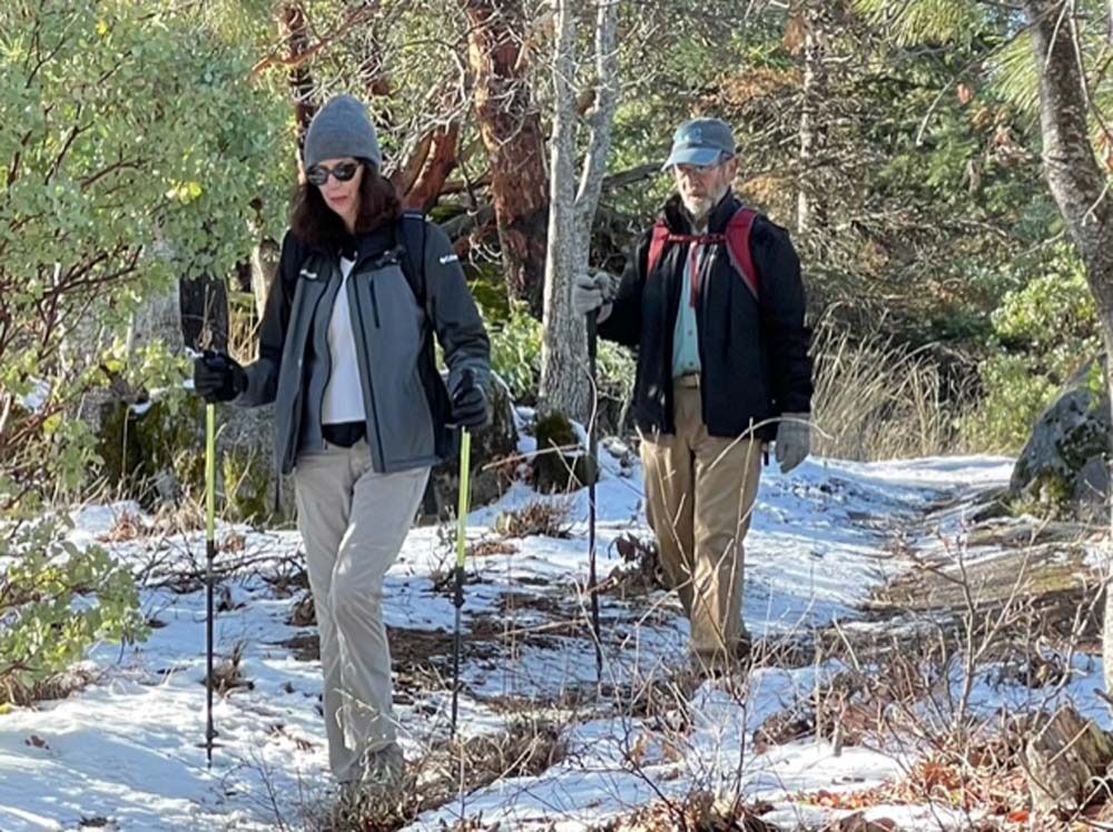 A beautiful day in Ashland with a forecast for extreme winds on Mount Ashland prompted a change of plans. We settled on a choice of joining Rich’s group to snowshoe at Buck Prairie or a Trans-Ashland hike. Four members opted for snowshoeing and five for hiking.