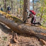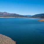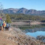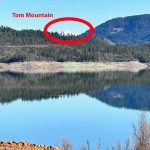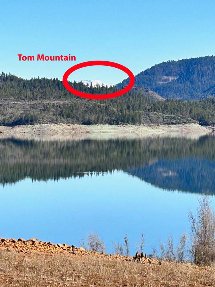 During lunch, we saw a woman in a wetsuit navigate a paddle board out into the lake; and across the lake we saw Flounce Rock and the ridge heading down to the Eye of the Needle. And, we saw a snow covered peak identified as Tom’s Mountain.