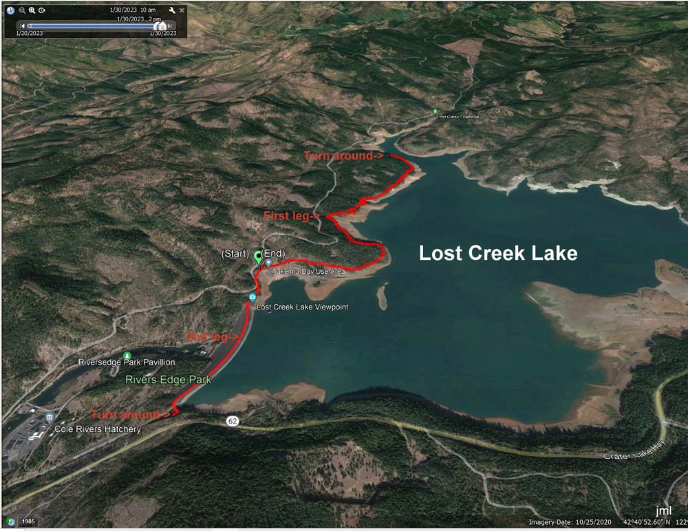 Our hope was that all this sunlight would produce some warmer weather somewhere. A search of local forecasts using the AHG website pointed towards the sunny side of Lost Creek Lake as the best possible choice.