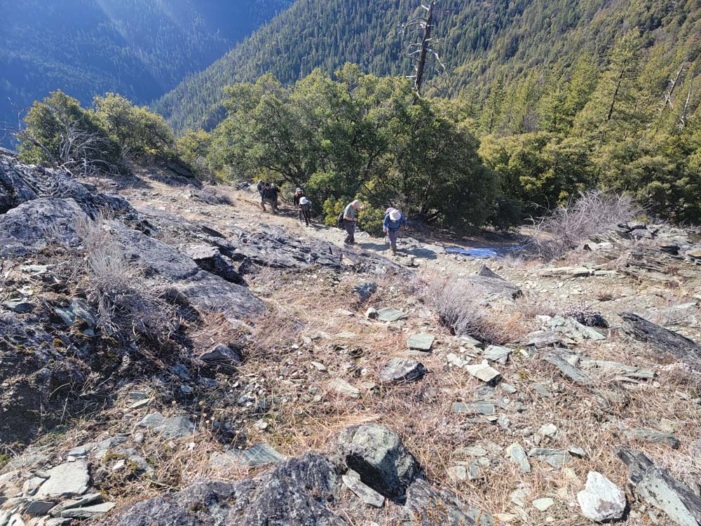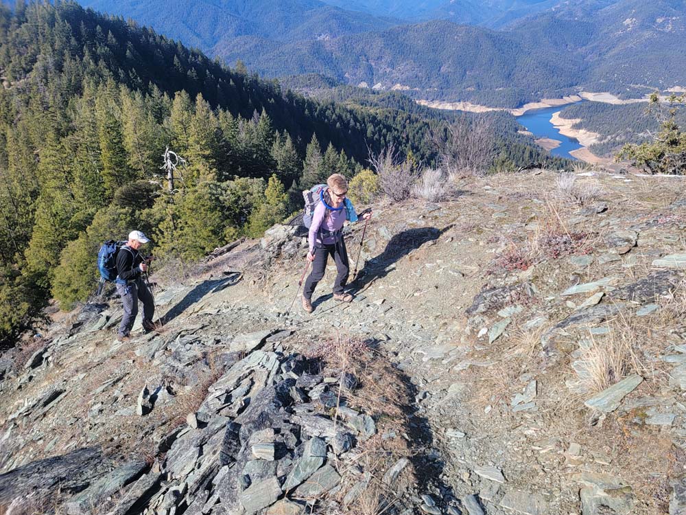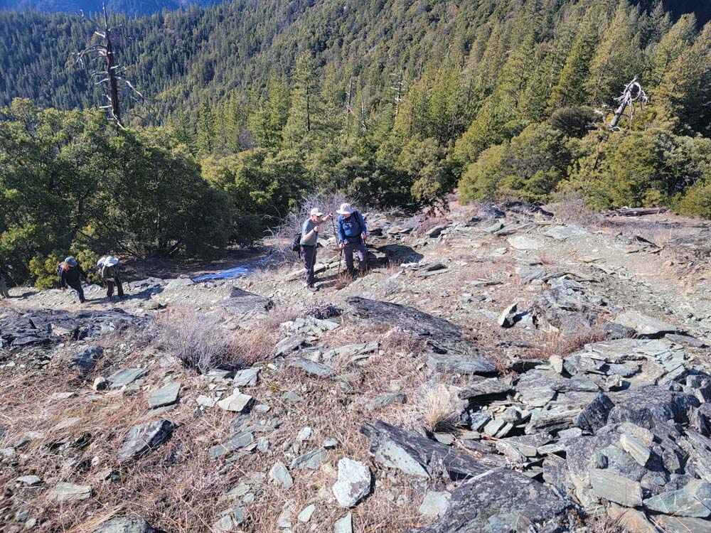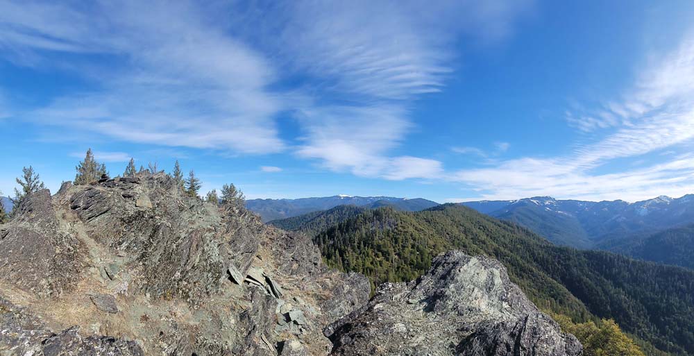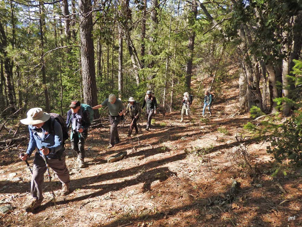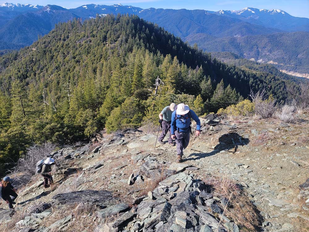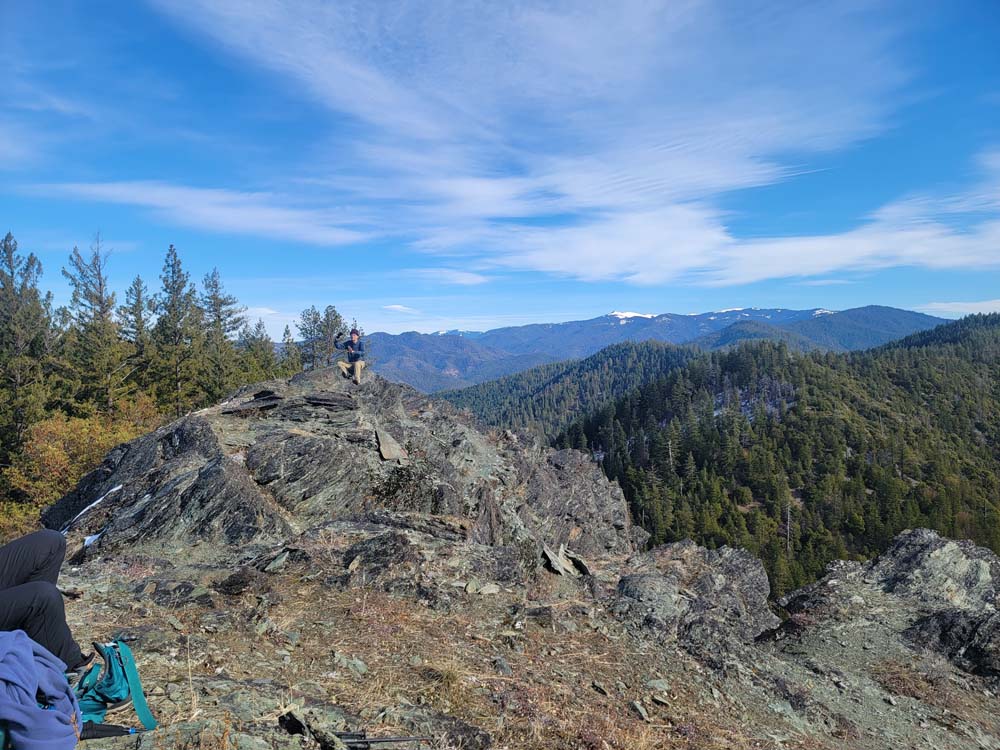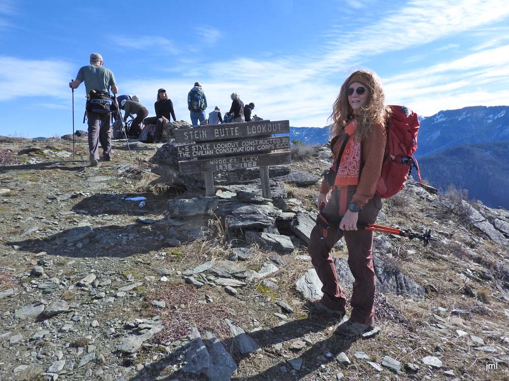 We enjoyed our lunch at the top and viewed the beauty of the Red Buttes and the Siskiyou Crest. After a long time relaxing, we headed back to our cars. The temperature was much warmer than when we started. When we got in the cars, the outside temperature was 53 degrees. When we returned to Jacksonville the temperature was 42 degrees.