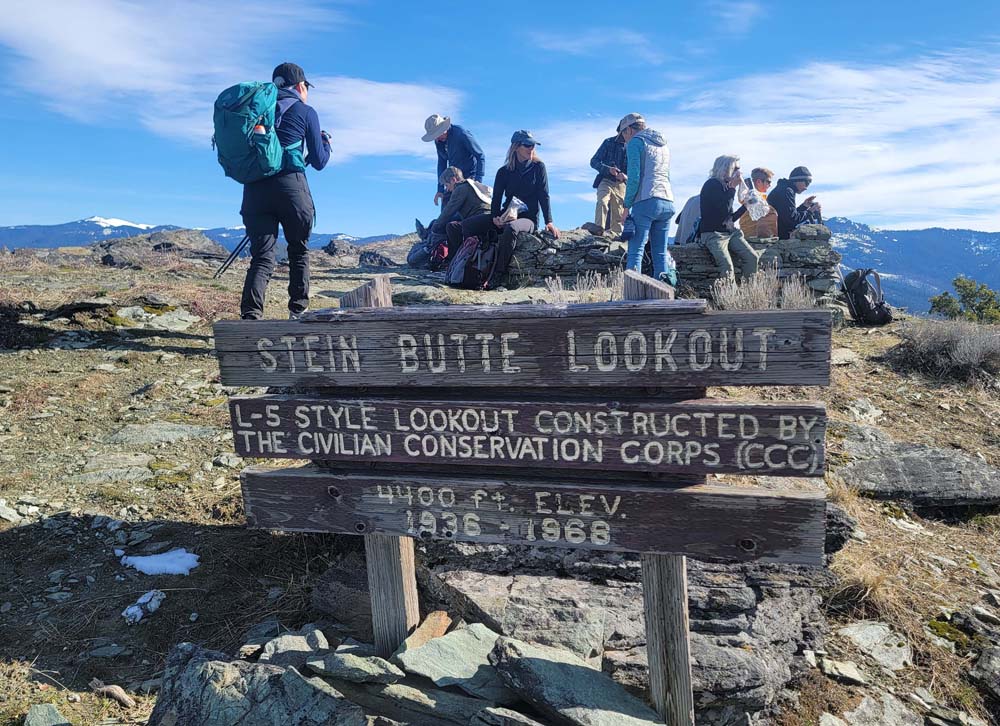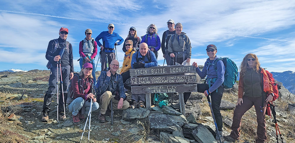 We had 13 hikers join together to hike Stein Butte on a cold morning with the temperature around 28 degrees. This hike starts uphill so by mile one we stopped to do some wardrobe adjustments.