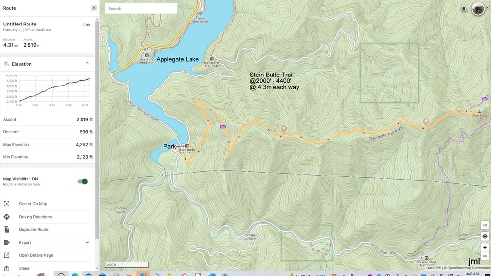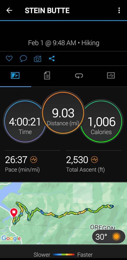 A warm breeze was blowing and more wardrobe changes were in order. We continued along and made the turn towards the top of Stein Butte. The last part of the trail gains over 100 feet in the last 0.20 of a mile.