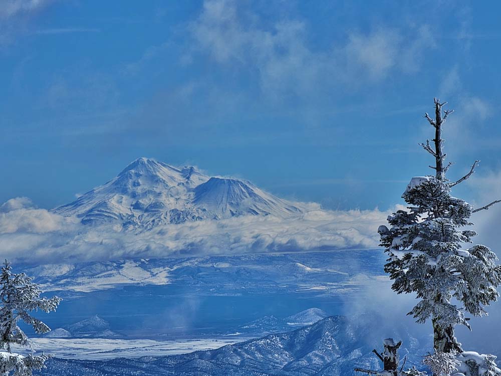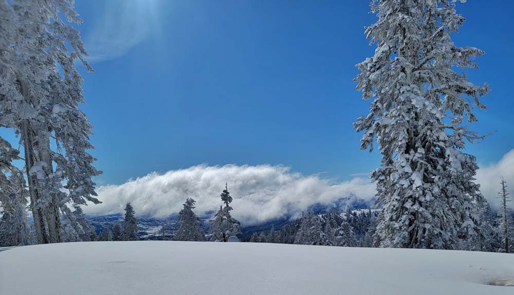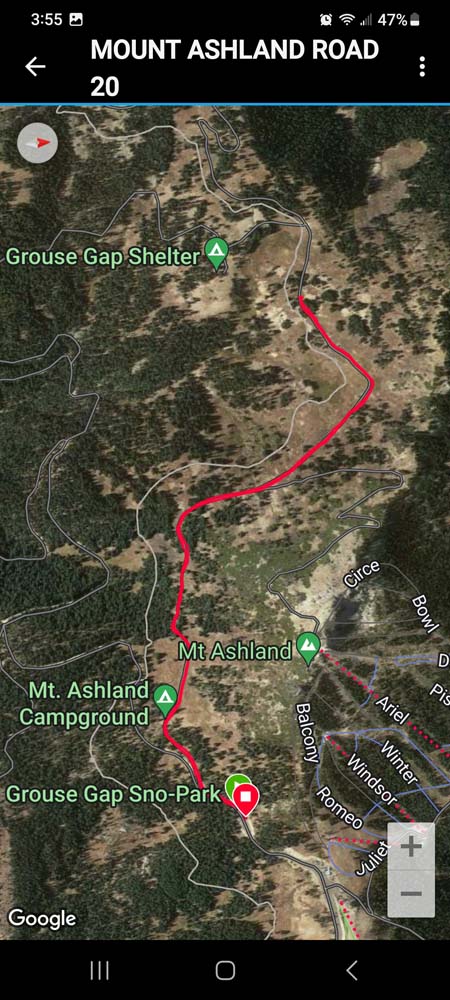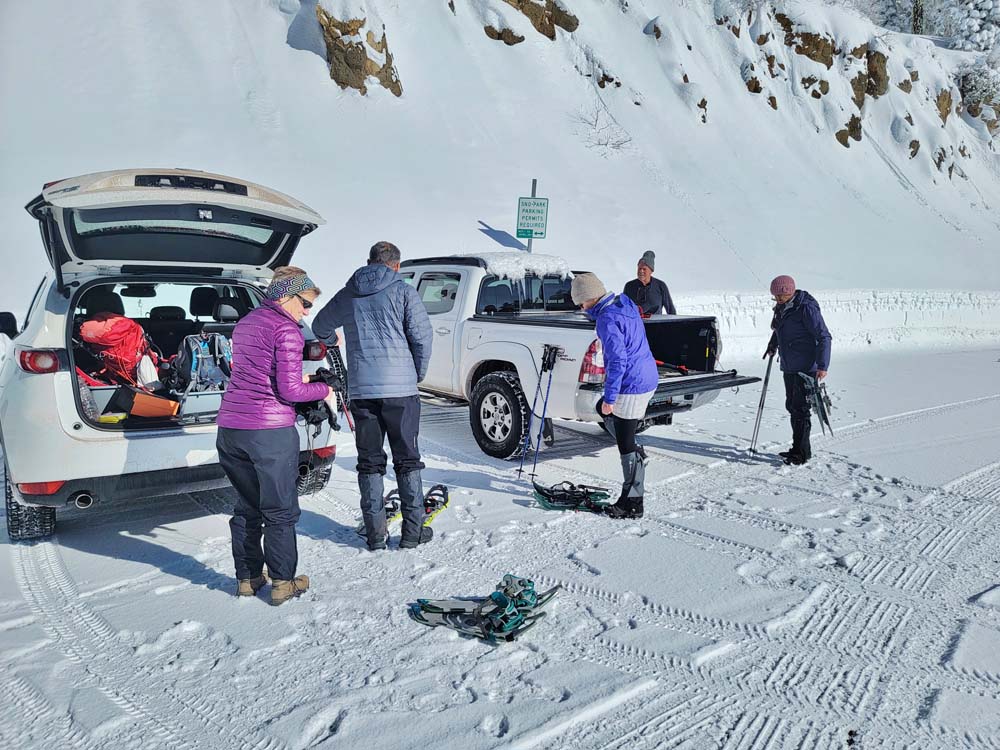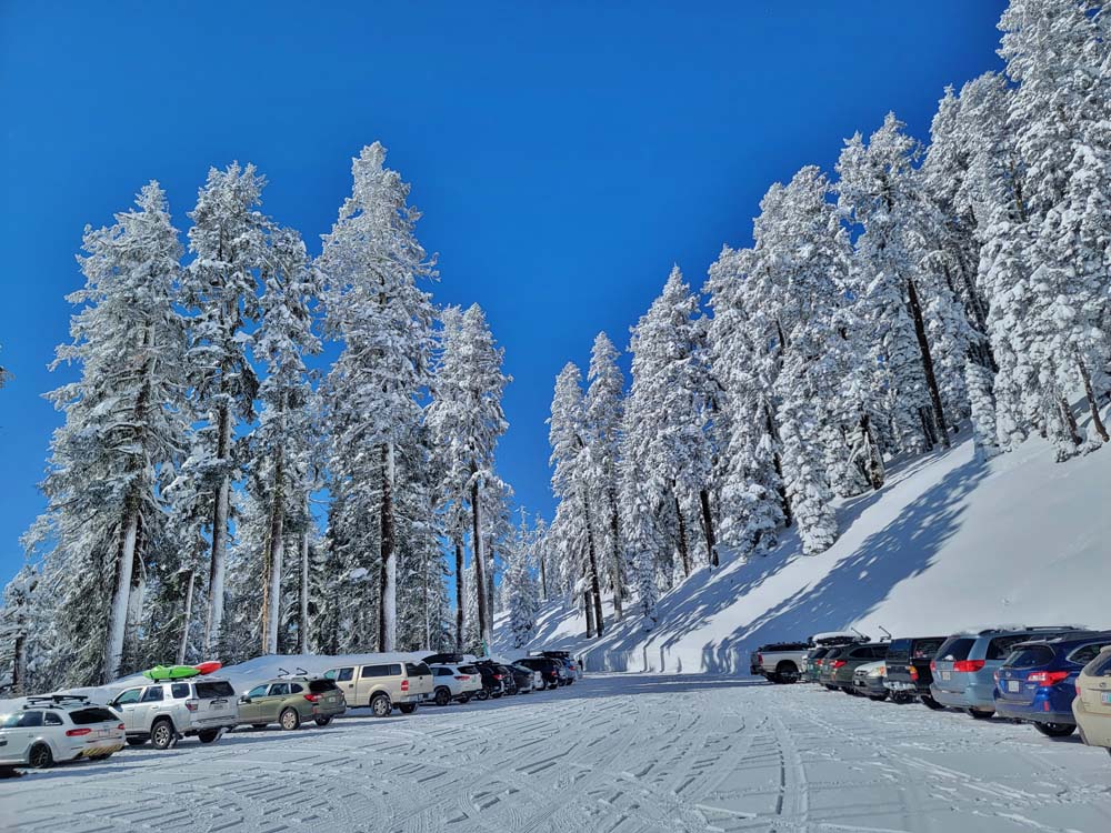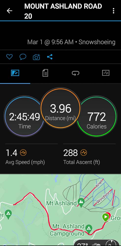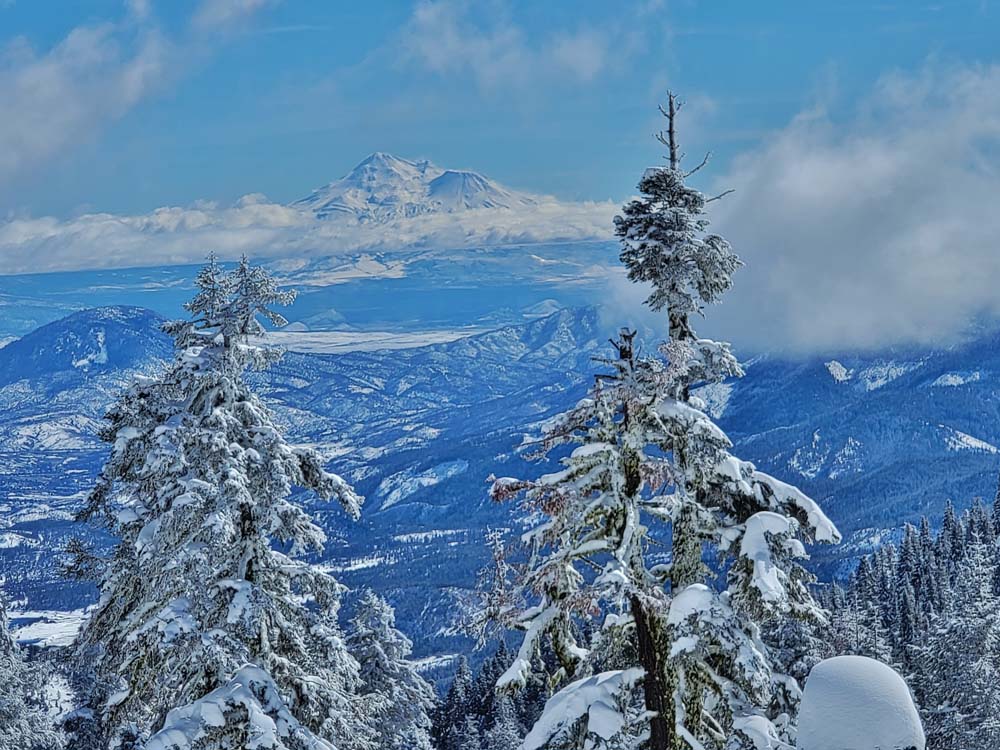 We started by meeting at Rite Aid to decide where we should go. The weather looked good, so we thought snowshoeing at Mount Ashland would be a good idea. We passed the parking area for Bull Gap and the road was still clear so we headed up to the ski lodge and parked beyond it at the Grouse Gap sno-park.