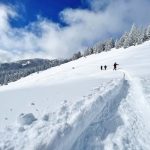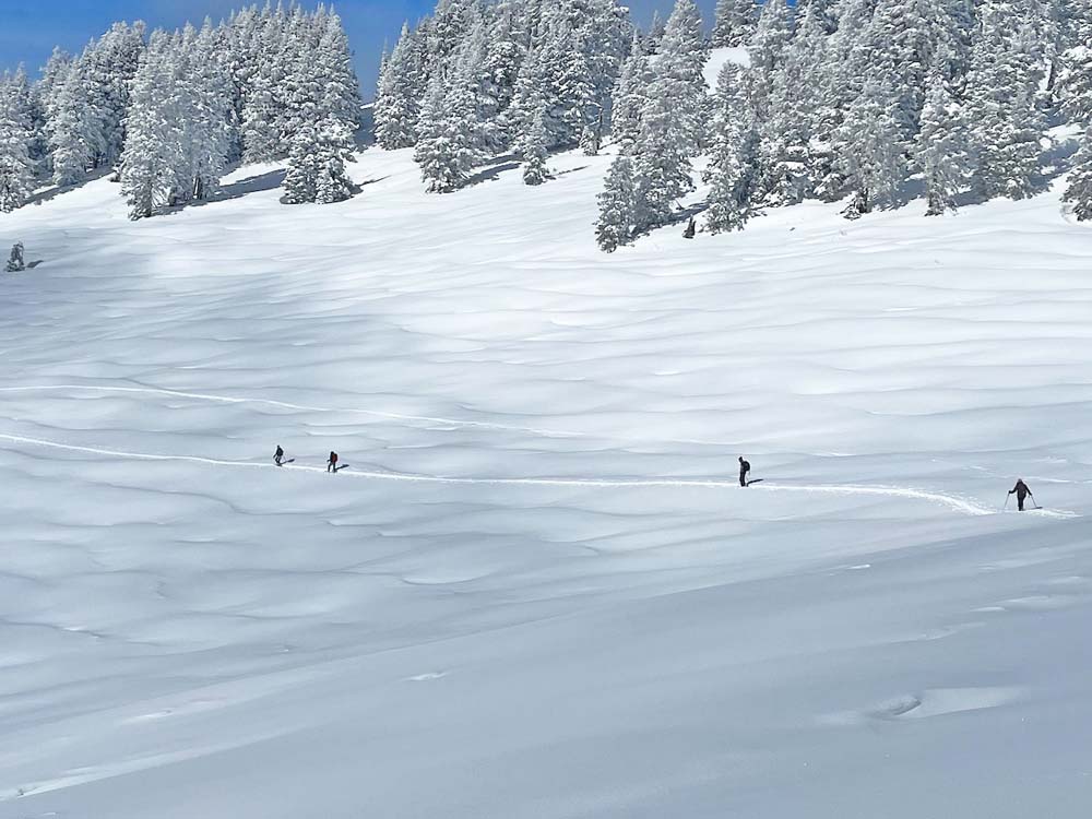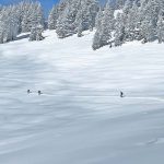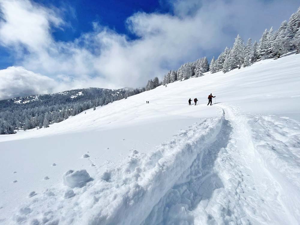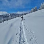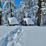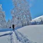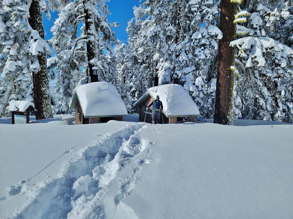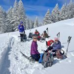 As we began our trip it was around the mid 30° with sunshine and lots of new snow. FS 20 had not been groomed so it was a little difficult making our way in the snow towards the Grouse Gap warming shelter. We took turns breaking trail and tried to keep the ground as even as possible by stepping in areas not yet flattened.