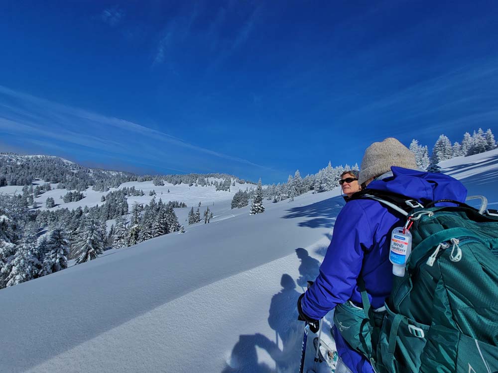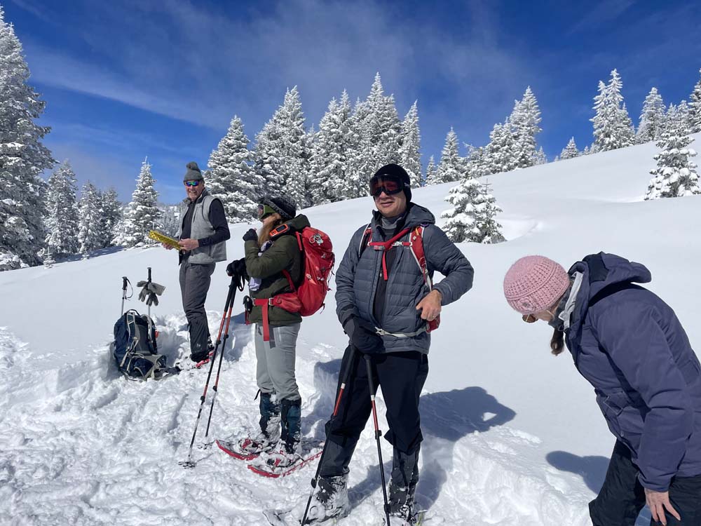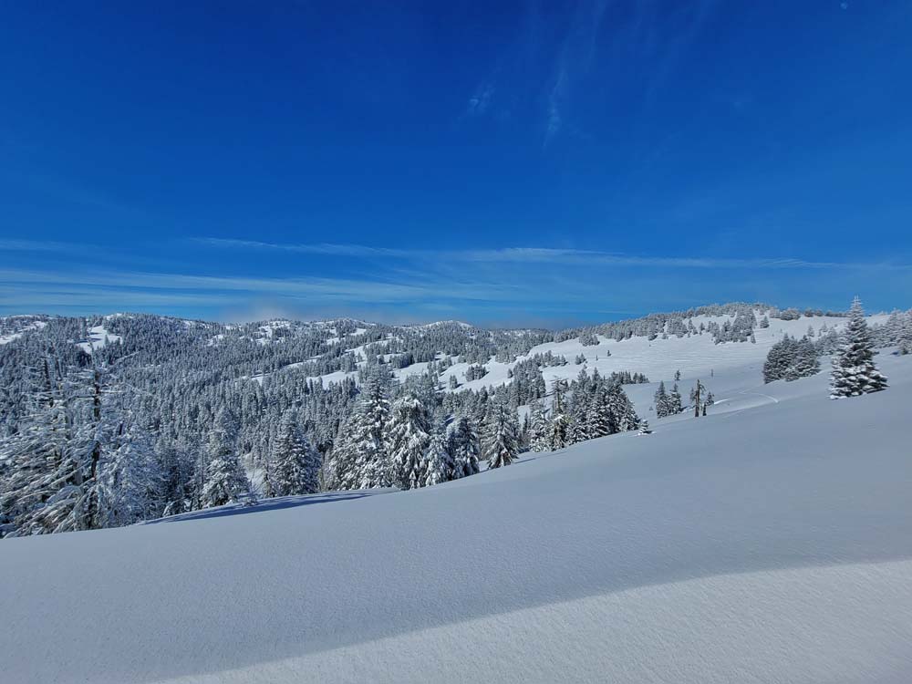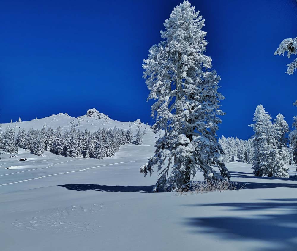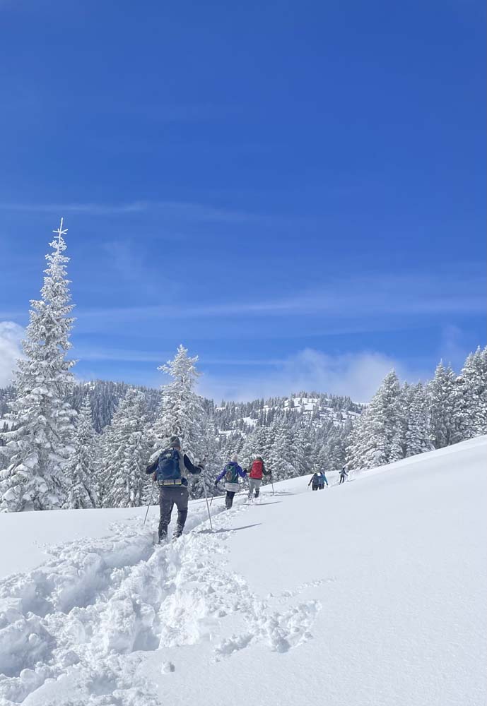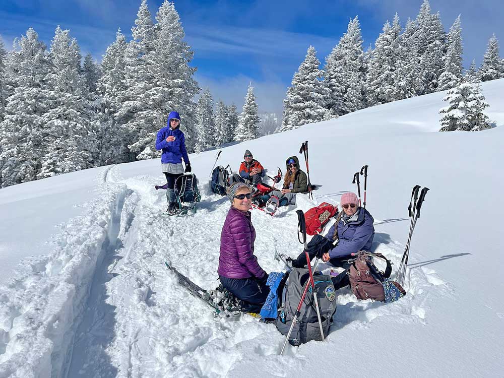 Due to the fact that there were times we were sinking in the snow up to our knees we decided to cut it short and stepped down an area so we could sit and enjoy the sun and our lunch. We took our time and then headed back to the cars. It was a beautiful day to be on the mountain.