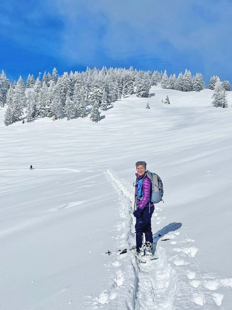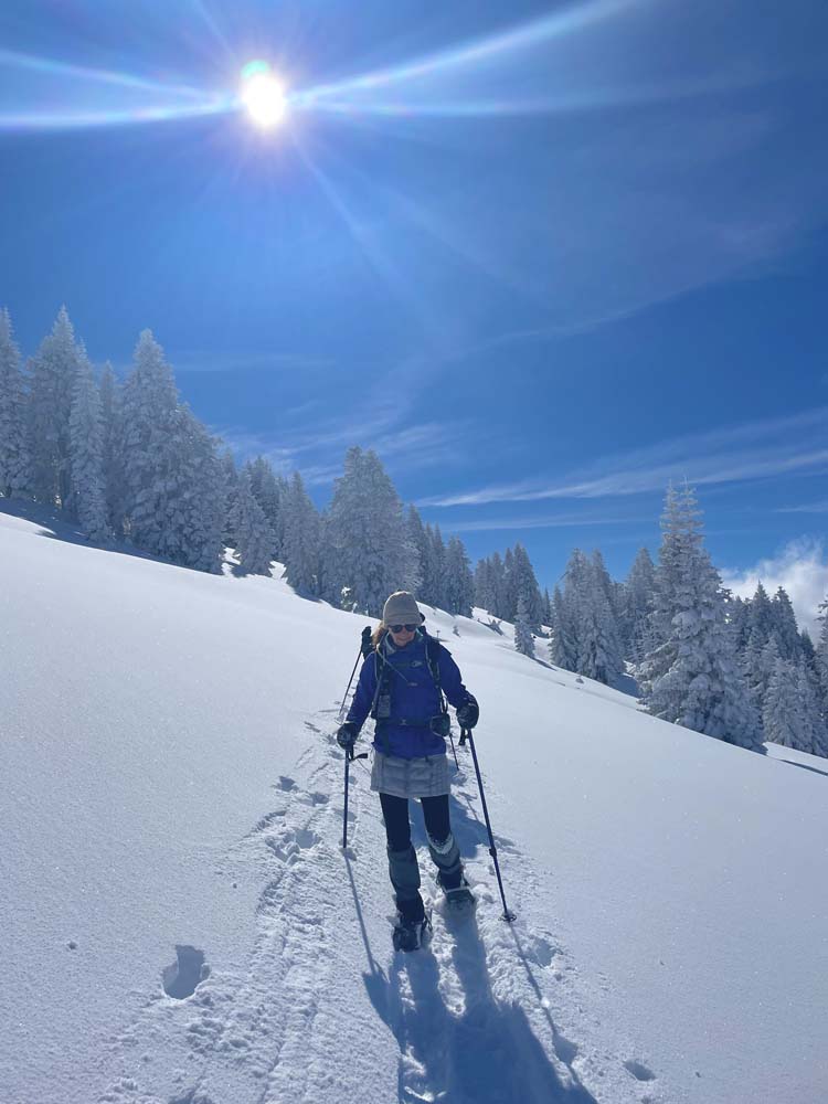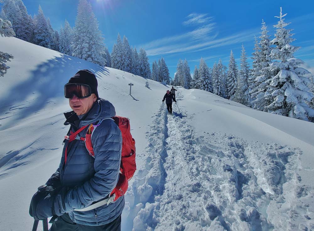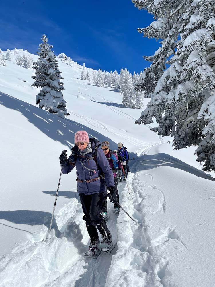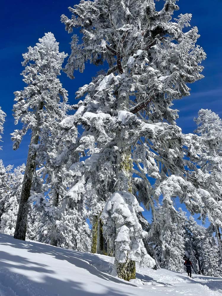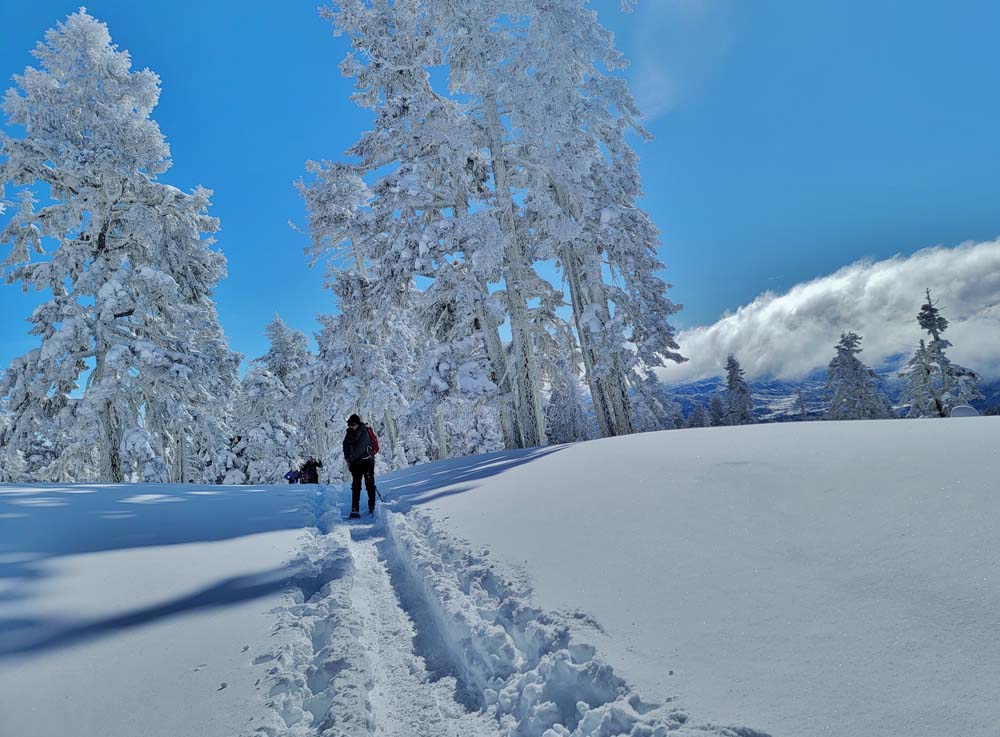 Due to the fact that there were times we were sinking in the snow up to our knees we decided to cut it short and stepped down an area so we could sit and enjoy the sun and our lunch. We took our time and then headed back to the cars. It was a beautiful day to be on the mountain.