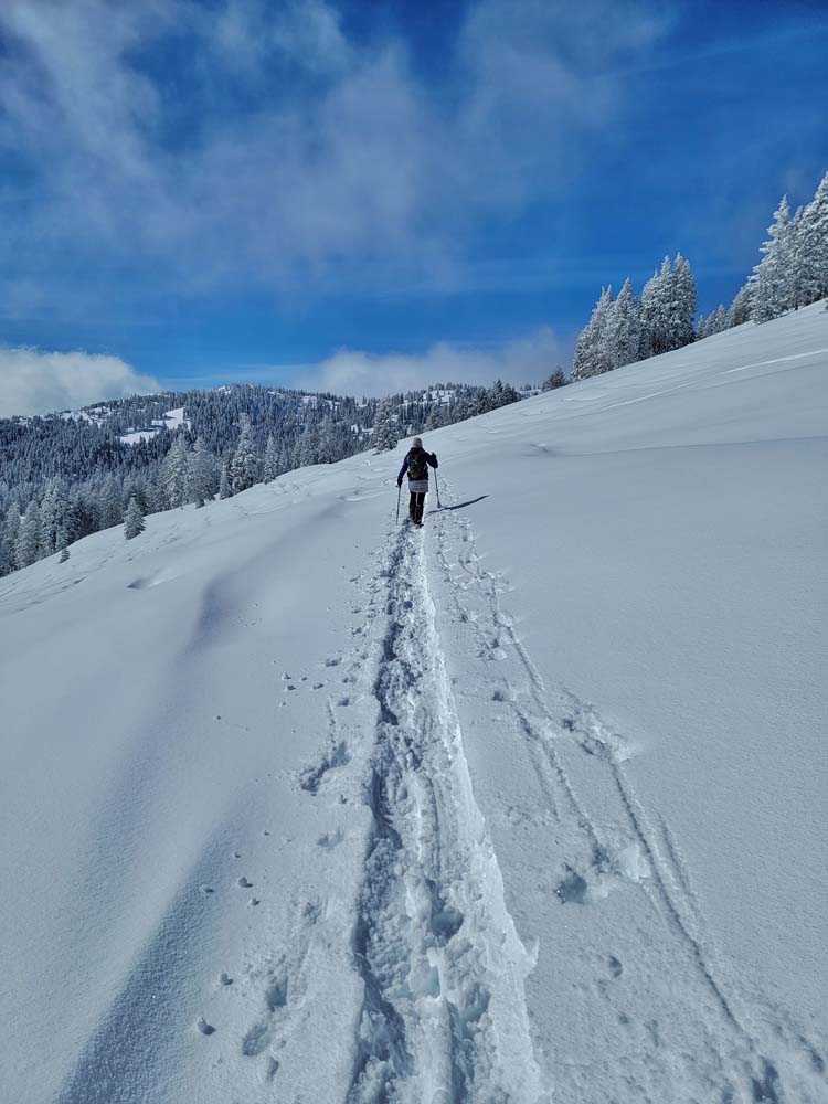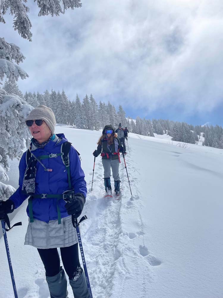 I want to give a big shout out to June. She had not snowshoed much before the start of this winter and had been borrowing my old snowshoes. Her kids bought her new ones and you should see her go. She took her turn at breaking trail and moved at a very fast pace. I would say she earned the most improved snowshoer award.