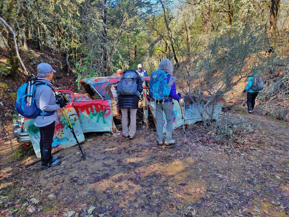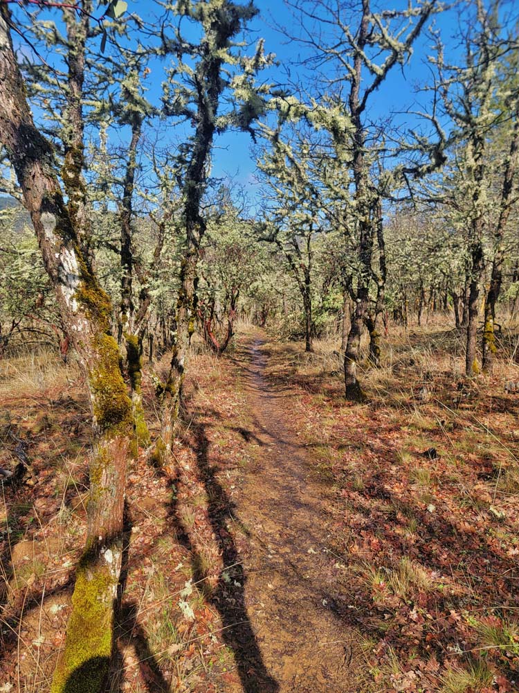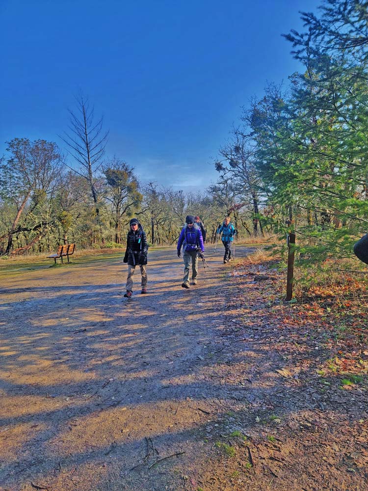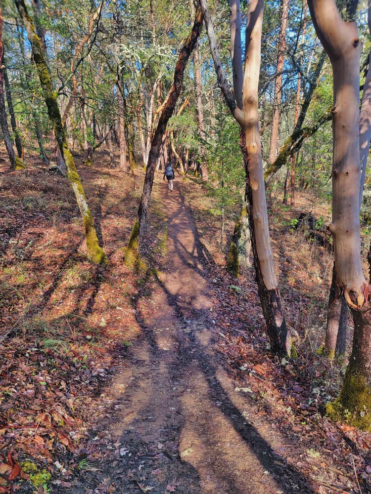 It was a chilly morning when 7 of us met at the Jacksonville Library to begin our hike in the Jacksonville Woodlands. We crossed Highway 238 and started up the steps to Britt.
